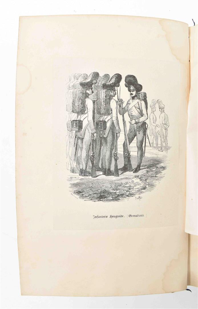 et la Crimée par la Hongrie, la Valachie et la Moldavie. Exécuté en 1837. Paris, E. Bourdin, 1840. 1st ed. (9),621,(3) p. Complete w. equestrian frontisp. portrait of Nicolas I, title-p. engr., 23 engr. on India paper w. protective sheet, musical score (often lacking) and num. vignettes, all engr. by D.A. Raffet (1804-60). Half leather w. marbled paper boards, gilt title and dec. on spine. Large 8vo.