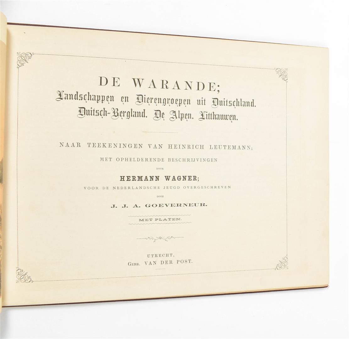 uit Duitschland/ Duitsch-Bergland/ De Alpen/ Litthauwen. Utrecht, Gebr. Van der Post, n.d. (ca. 1880), 4 parts in 1 vol., (2),40 p., 20 col. lithogr. plates, contemp. gilt-lettered cl., obl. 4to.