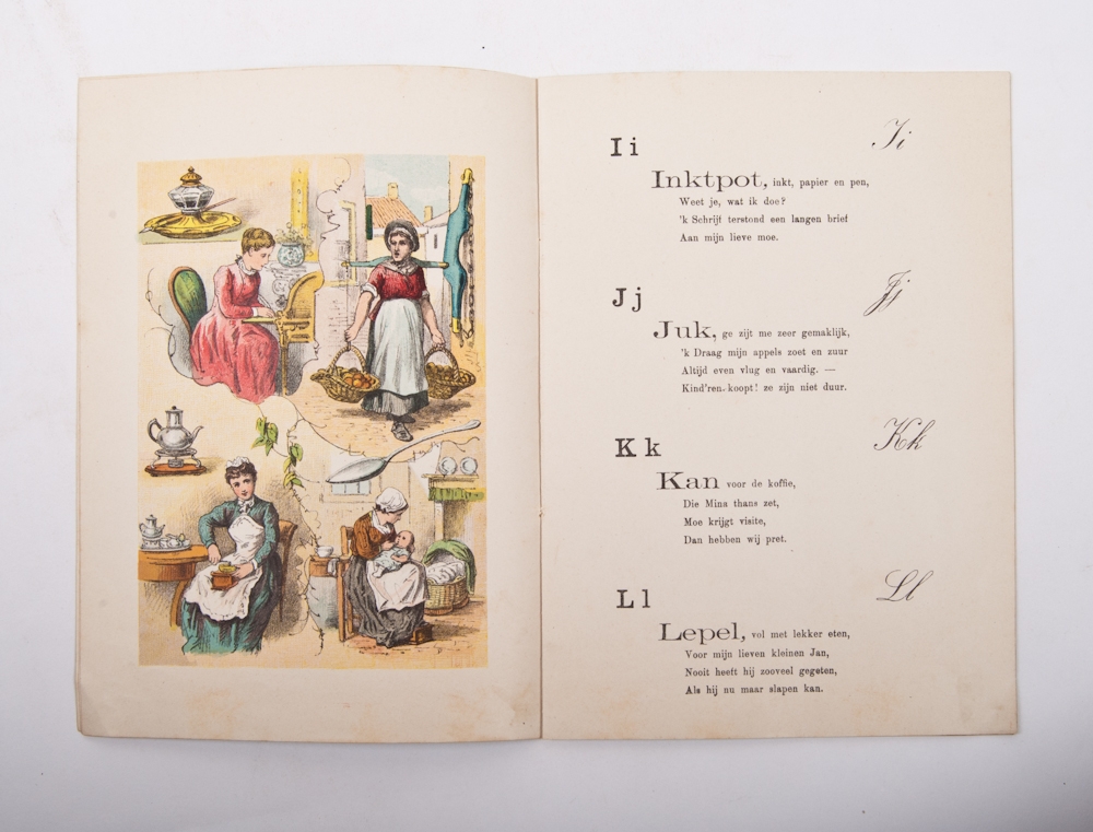 Lina's A.B.C. Boekje. Groningen, W.R. Casparie 1891. 16 p., 6 of which are lithogr. plates. Good copy.