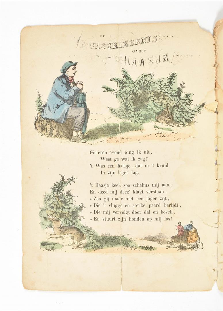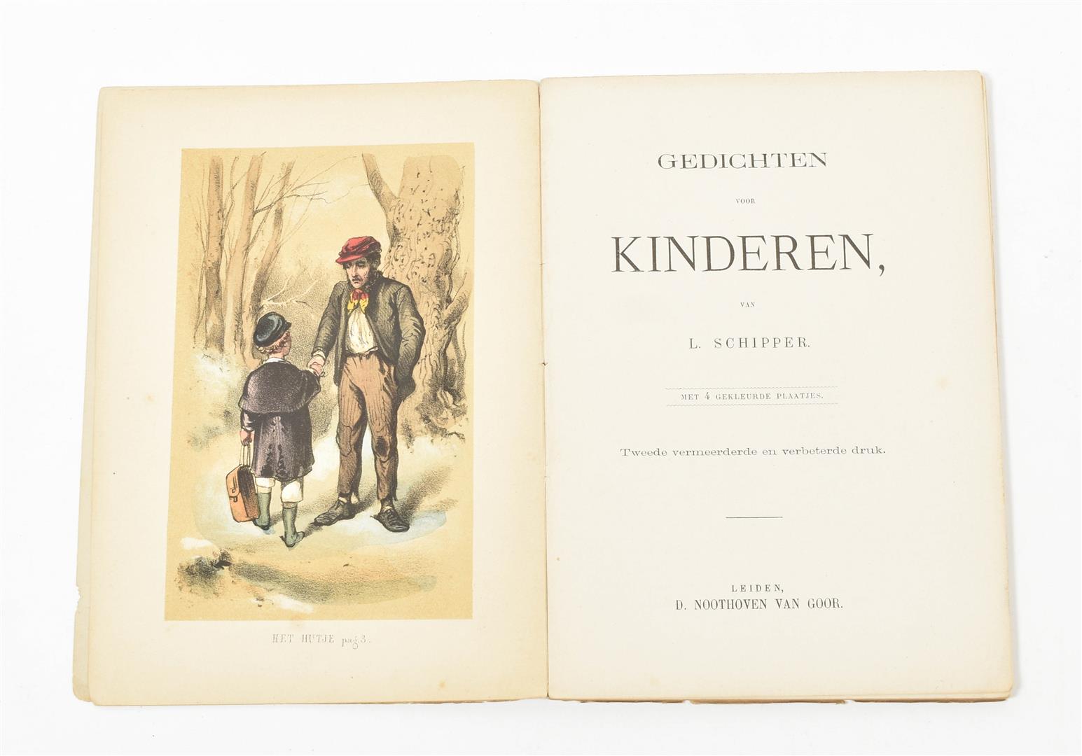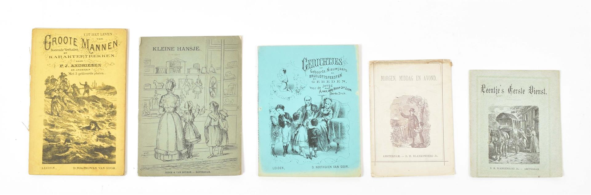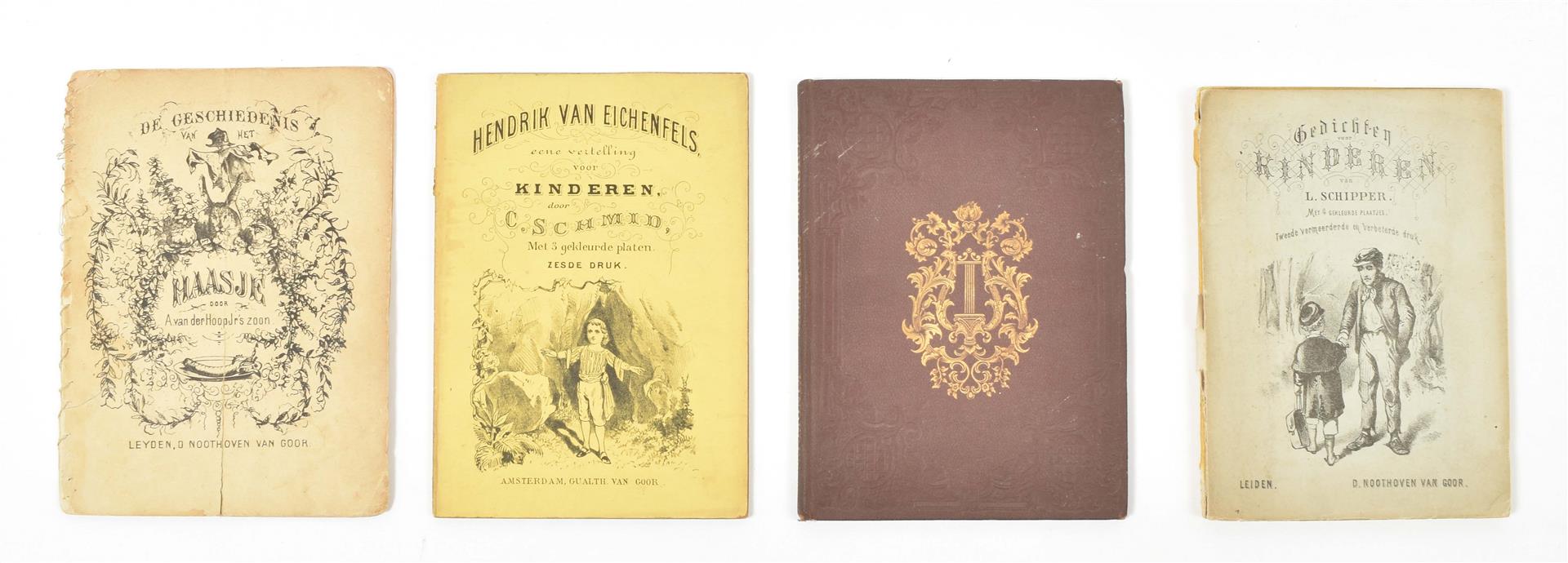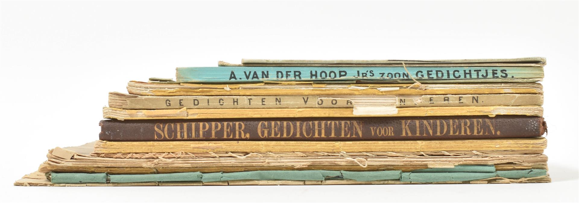 in Leiden, late 19th cent. Incl. a.o. Gedichtjes op geboorte Nieuwjaars (not in the KB), De Geschiedenis van het Haasje and 2 copies of L. Schipper's Gedichten voor kinderen. Added: 2 small works publ. by B.H. Blankenberg, Jr. (also late 19th cent.): Leentje's eerste dienst and Morgen, Middag en Avond (not in the KB). -and 3 others.
