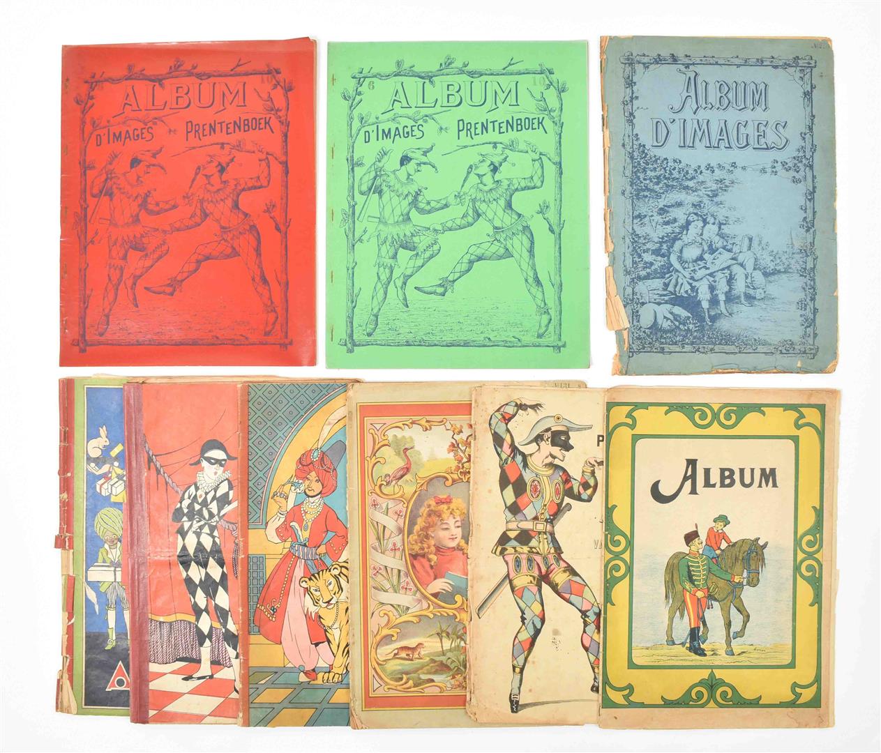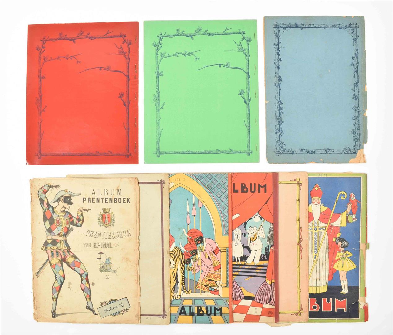 Incl. duplicates/ variants, w. occas. defects. Sold as a collection, not subject to return. A nice collection of albums containing collections of catchpenny prints in the typical way Pellerin and Brepols published them in huge quantities, but not often found in the form of albums with the orig. wr. (1x dep. Sinterklaas) preserved. Added: one other large sized issue by Brepols. (total 16)