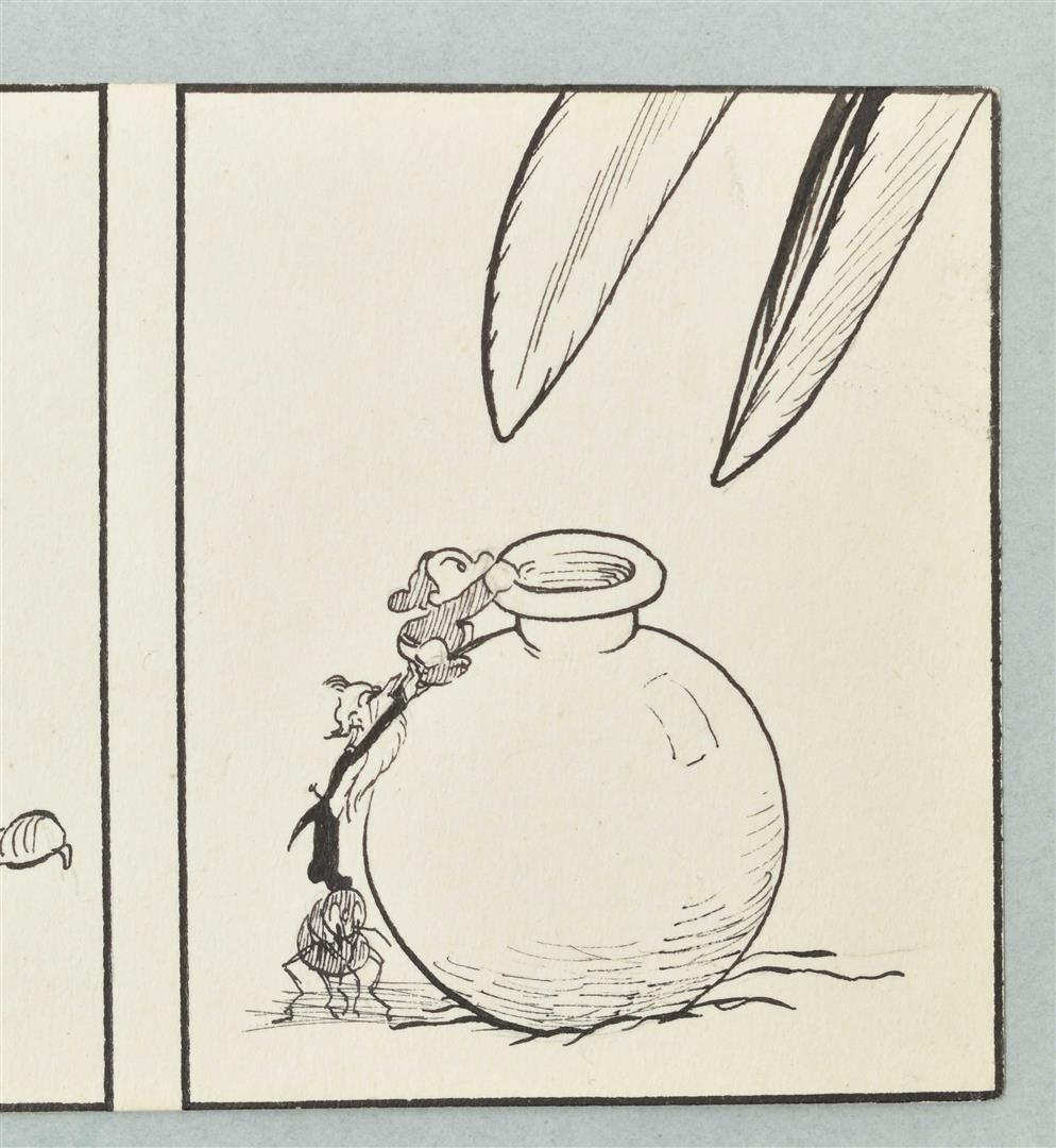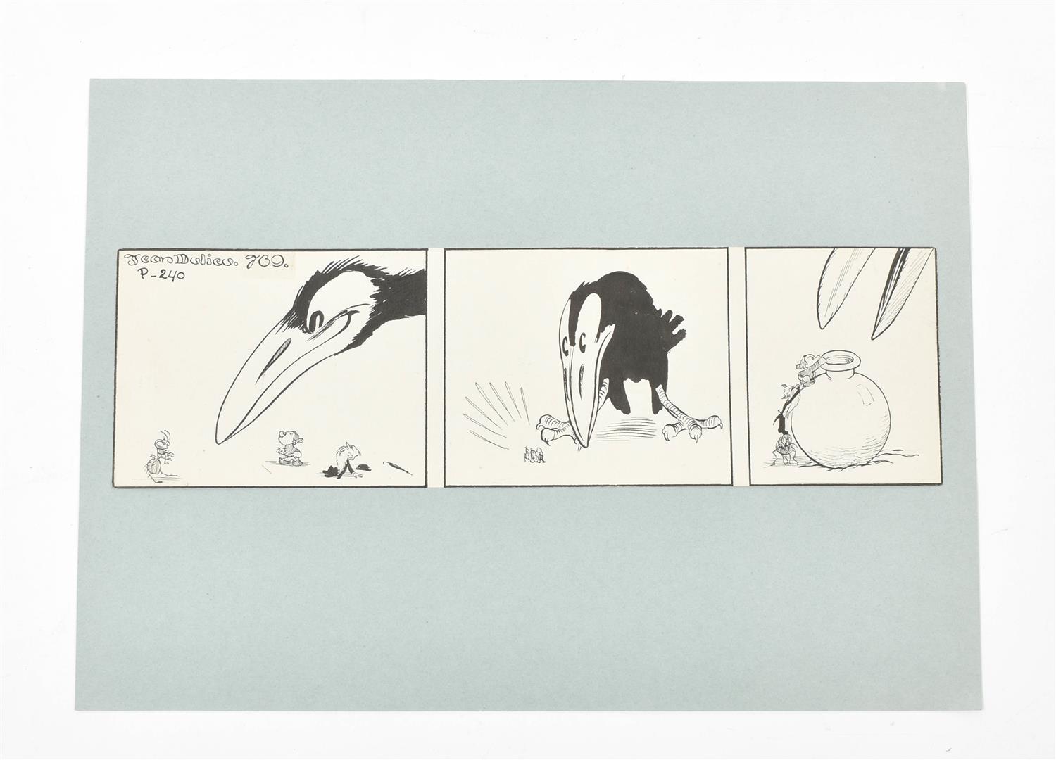 Strip no. 769 in India ink. Containing a Paulus, professor Punt, an ant and a giant Salomo. 8 x 27 cm.