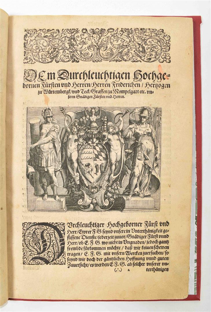 (...). Frankfurt, B.W. Richter, 1600. 1st German ed. (8),121,(2),21 p. Engr. title-p. dedicatory engr., 21 half-p. engr. Later cl. Sm. folio.
