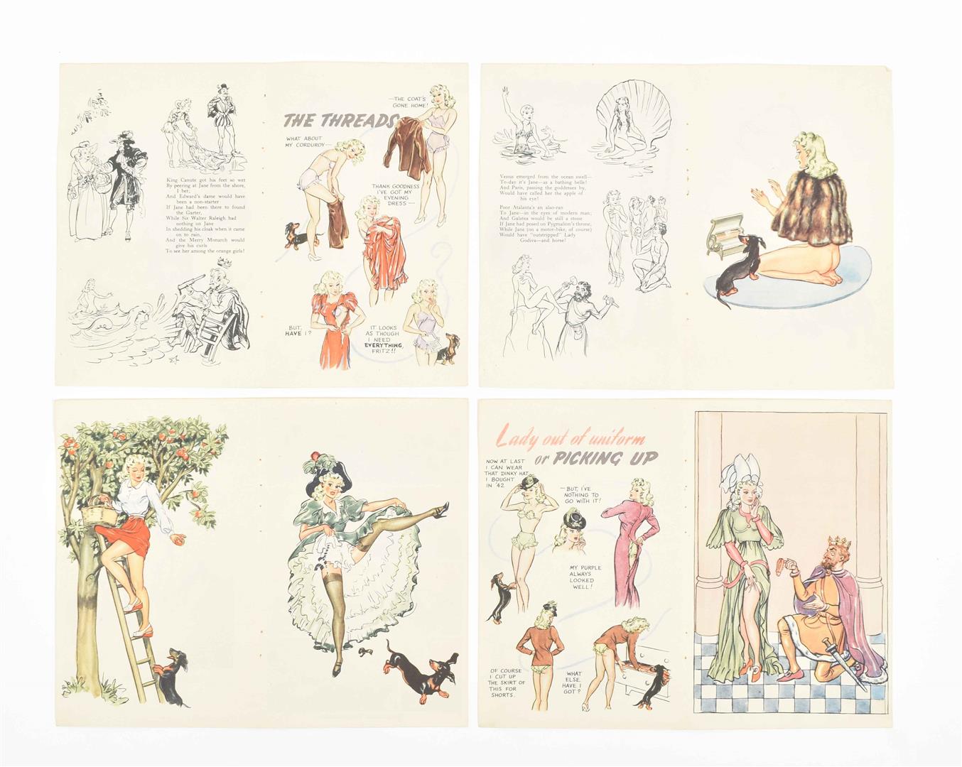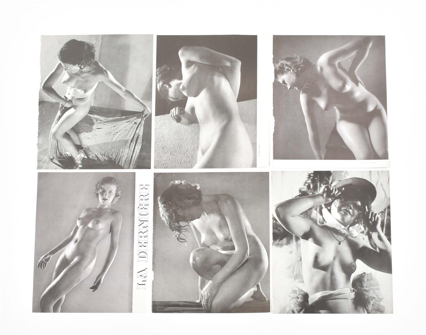 Taken from var. French magazines, 1920s-40s, all 4to. Some w. indication of the studio or photographer: Manassé (many), Paul Hamann, Studio 35, Braig, Henri Manuel, Moreau, Seidner, Denise Bellon, Paris-Sex-Appeal, Keystone, Jacques Lemare, Martin, Vizzavona, Binder, Granère, Claire, Ervé and S. Sasanof. -and 2 other binders containing loosely inserted erotic playing cards, cards by Éditions Esco Antwerp, bifolia taken from Jane's Journal by Pett (late 1940s, w. erotic photogr., ills. and comics) and plates after M. van Maele, a.o.