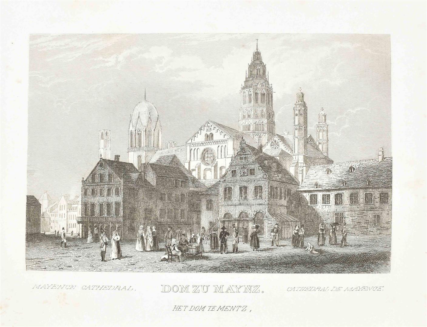 en in de badplaatsen van het Taunus-gebergte. Karel Geib. Met 60 staalplaten naar de oorspronkelijke tekeningen van Rogers, Winkles, G.A. Muller en Tombleson. Amst., Gebr. Diederichs, 1839. (2),97,54 p. Complete w. 60 very fine steel engr. numb. after the title. Later half leather w. marbled paper boards, gilt title on spine, new endpapers. 16 x 12.5 cm.