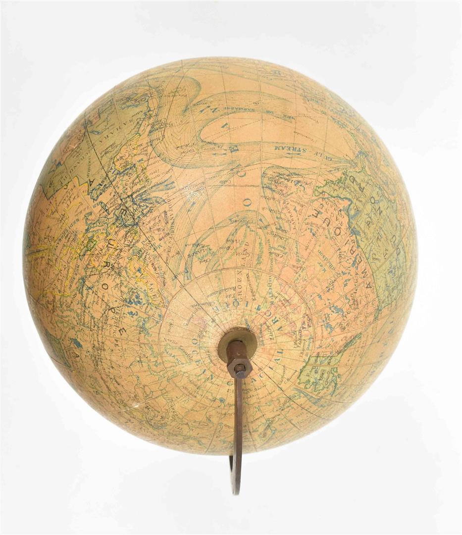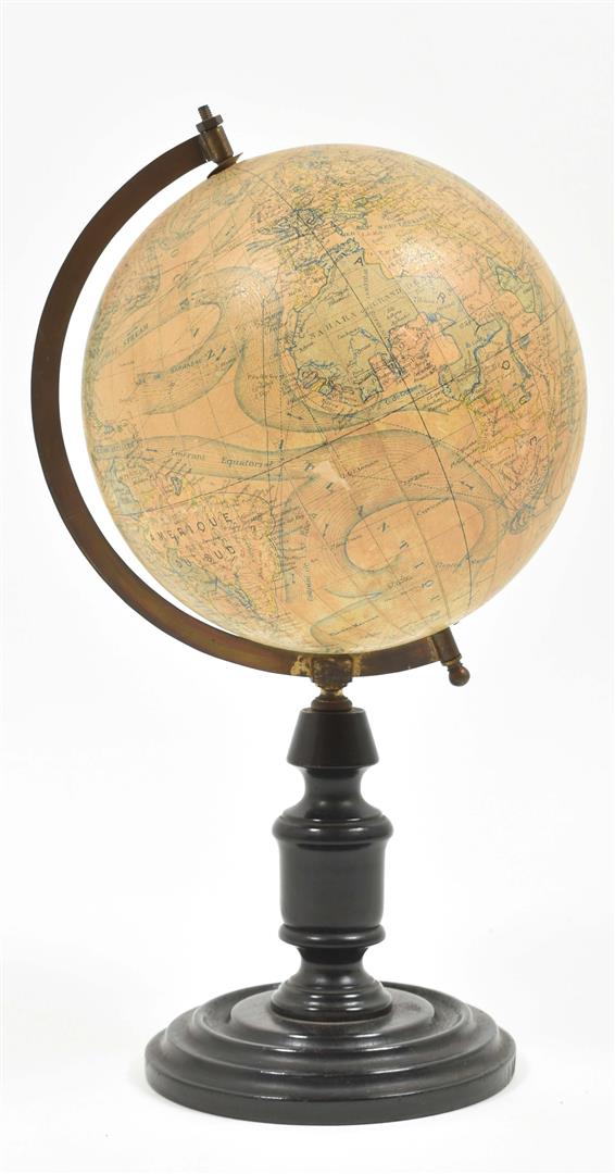 J. Lebègue & Cie Editeurs. Rue de Lille, Paris. H. 38 cm on wooden base, legenda w. Railways, Telegraph-cables on the bottom of the Oceans, International ship navigation etc., second half 19th. cent.
