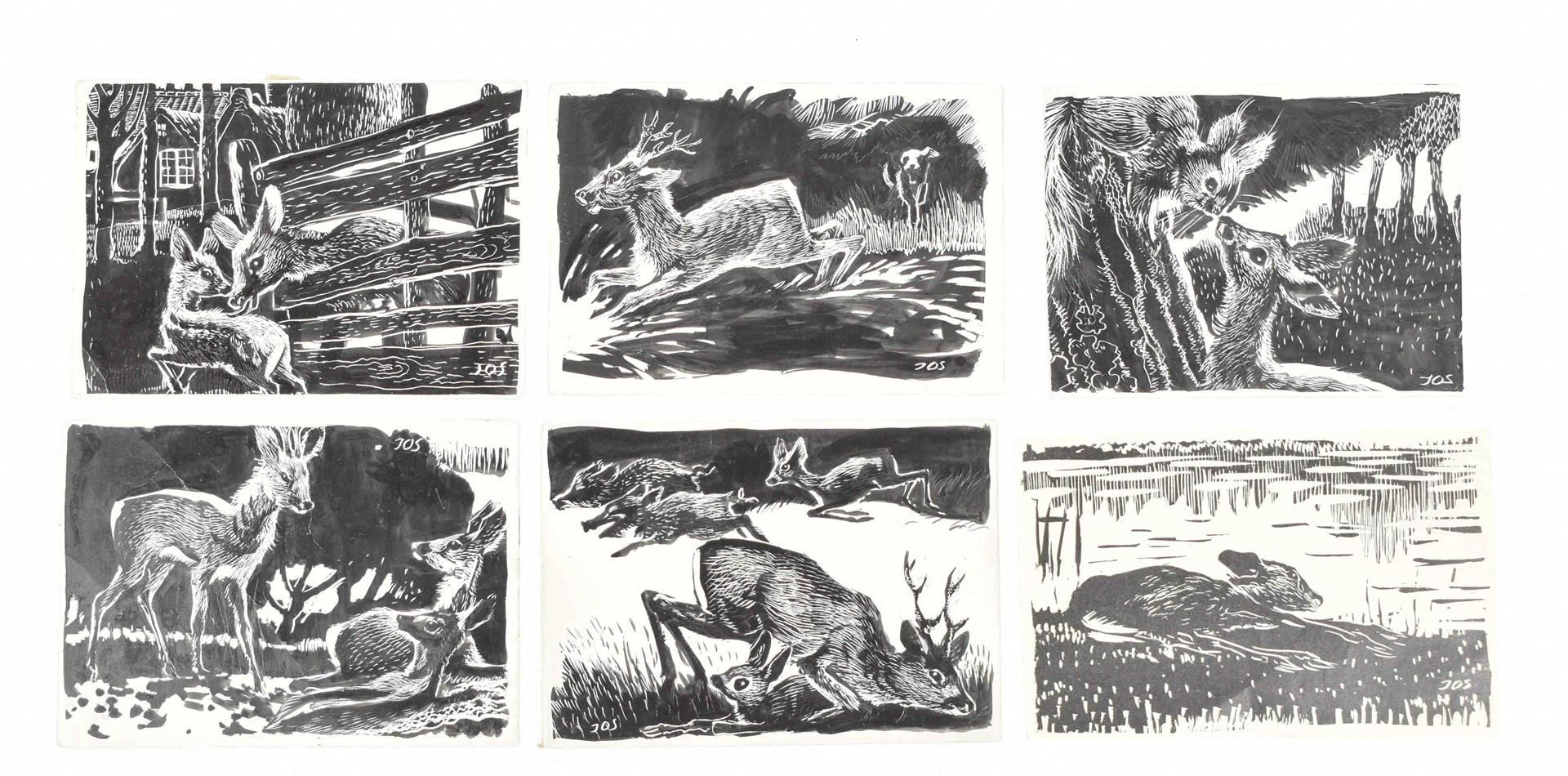 Ruting, J. (1909-1987). Twelve original drawings from De jeugd van Ruuntje het Reekalf