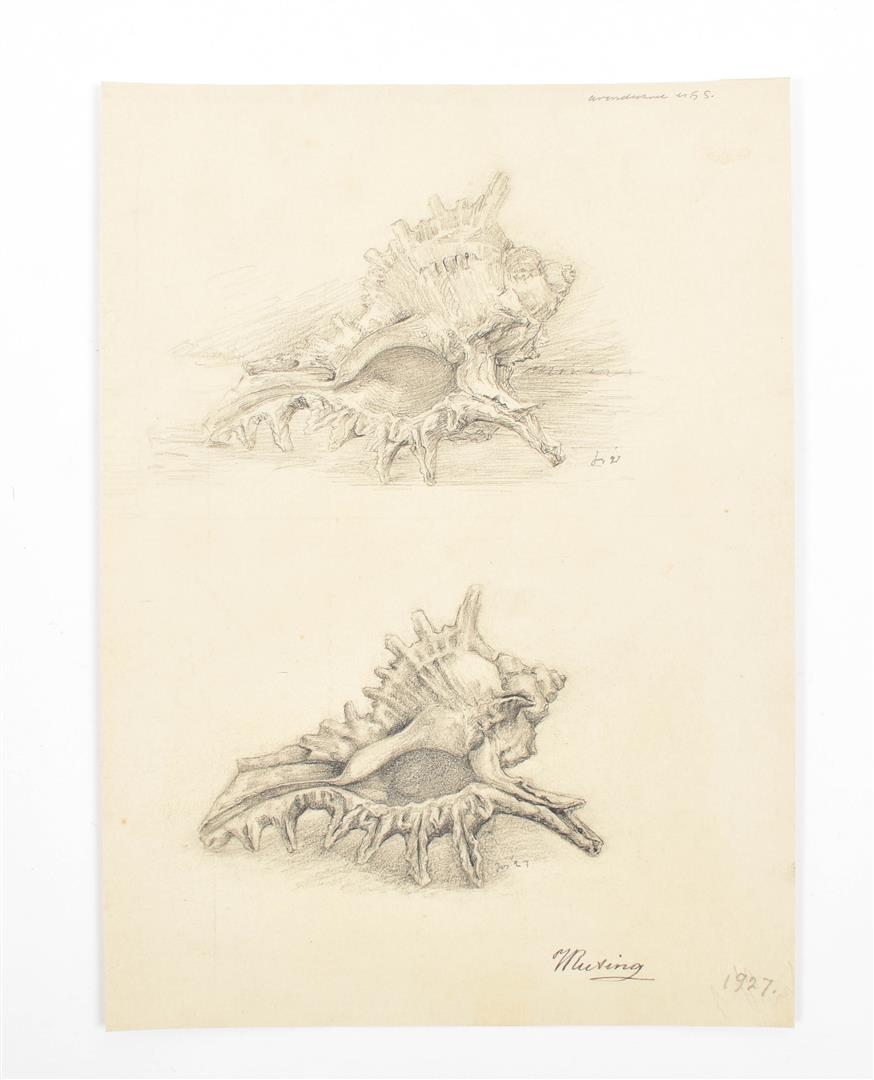 (1) Two files containing approx. 60 drawings incl. finished pencil drawings of shells and 2 sm. watercol. of birds. (2) Jongenskamp N.J.V. Leusden. Kom ook! Een Fijne Kamp-week! Brochure + orig. and 4 alternative originals. (3) A file containing 13 lithogr. and leaflets by Ruting, a.o. Literary print, 1944. Appeared in edition of 100 w. a poem by Max Lowland (pseudonym of Max Schuchart) and drawings by Ruting, no. 13.