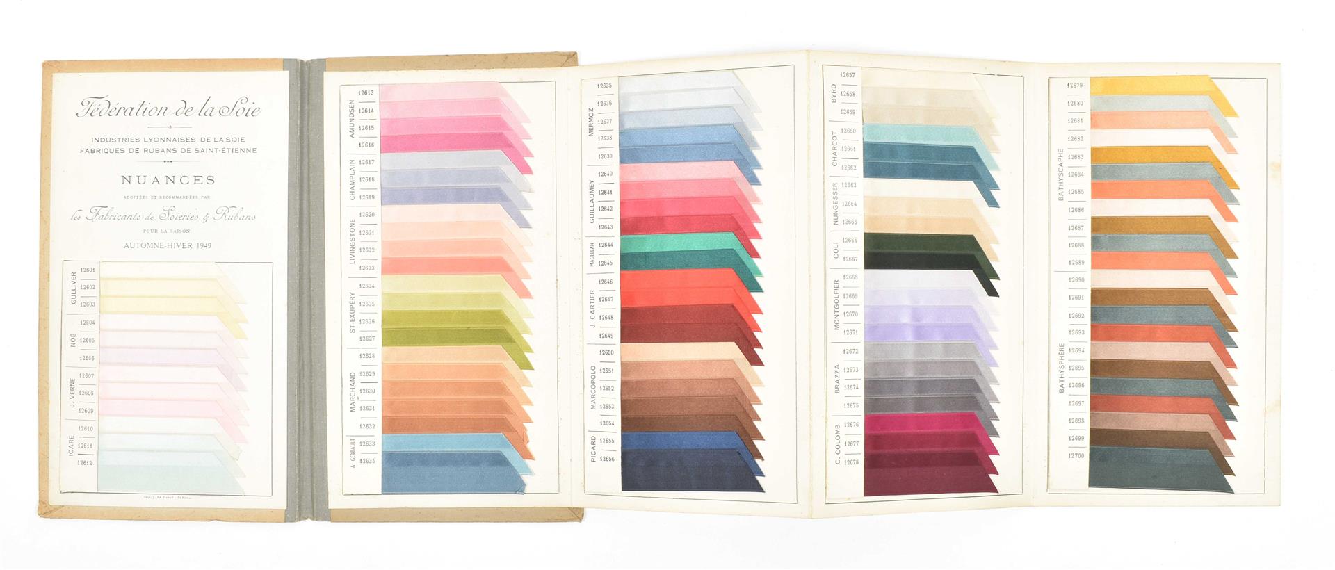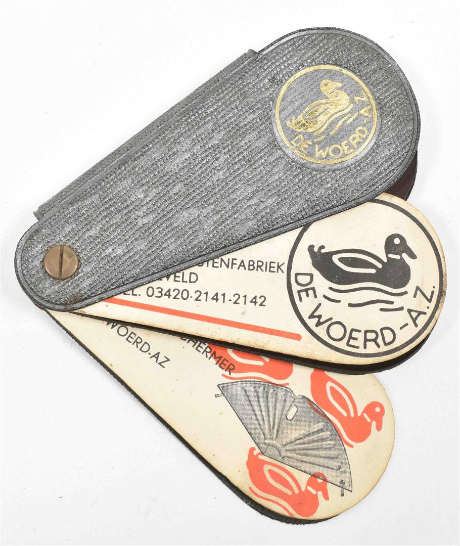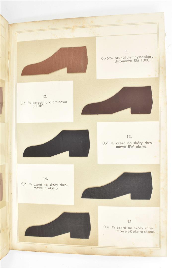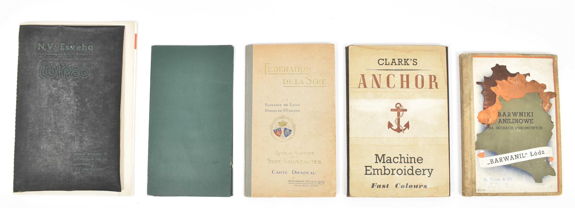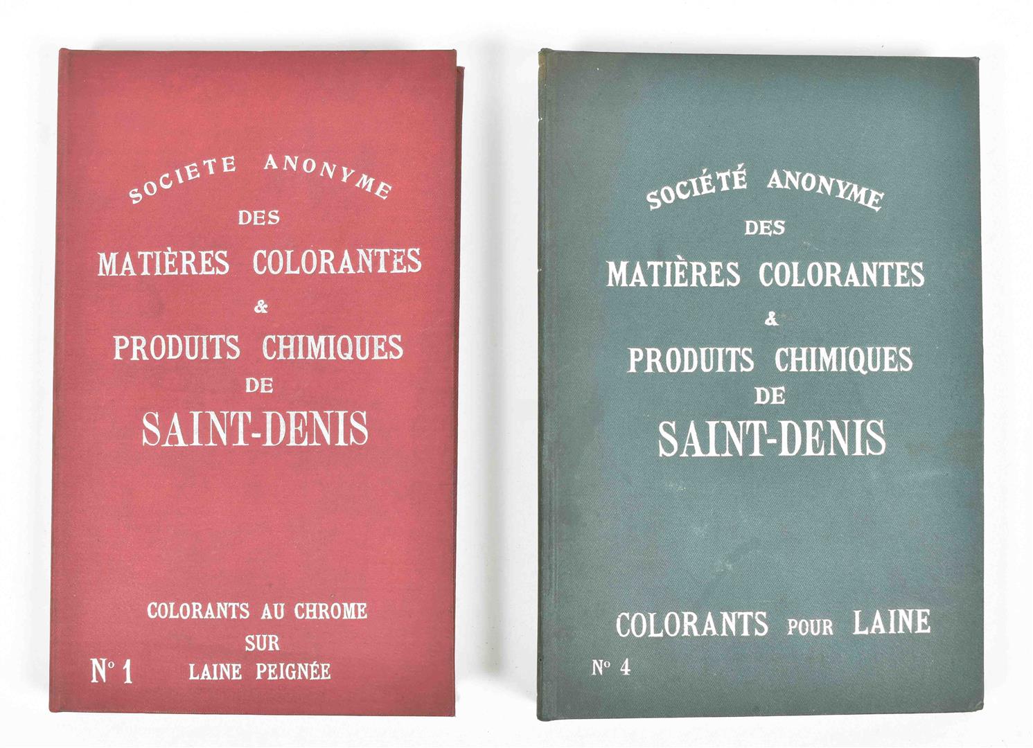 First half 20th cent. Comprises a.o.: (1) De Woerd-A.Z. Kettingkastenfabriek Barneveld. Pocket trade catalogue in the shape of a chain guard, w. 15 specimens of different materials and 6 paper advertorial lvs. (2) Ateliers de Construction Mécanique et Electrique Achille Deprez, Bruxelles. Incl. 50 samples of electric wires, 11 x 21.5 cm, folded as a booklet, ca. 1930. (3-4) Société anonyme des matières colorantes & produits chimique de Saint-Denis. No. 1. Colorants au chrome sur laine peignée. No. 4. Colorants pour laine. Sample books, both fold. leporellos w. 9/ 10 p. w. 54/ 83 mounted col. cl. samples, ca. 1920. -and 10 others, incl. a trade catalogue on leather w. mounted sample in the shape of shoes and bags.