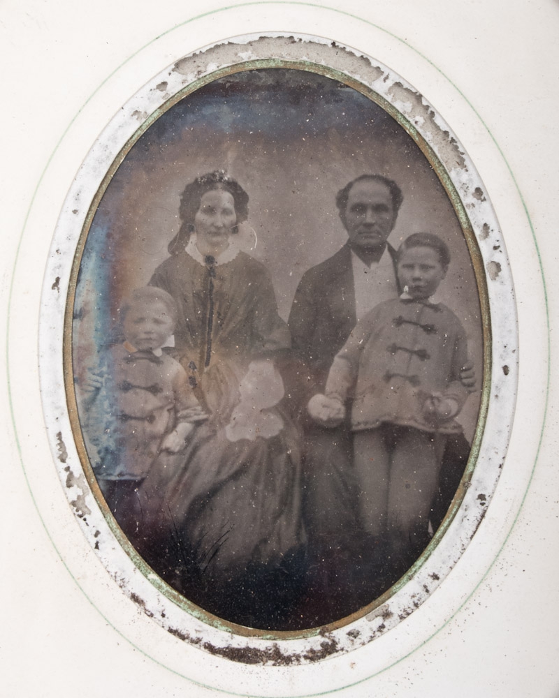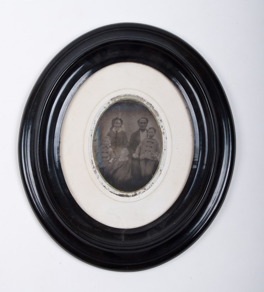 -Daguerreotype, in original oval frame. Portrait of a man and woman with 2 children. Image size 10,5x14,4 cm.