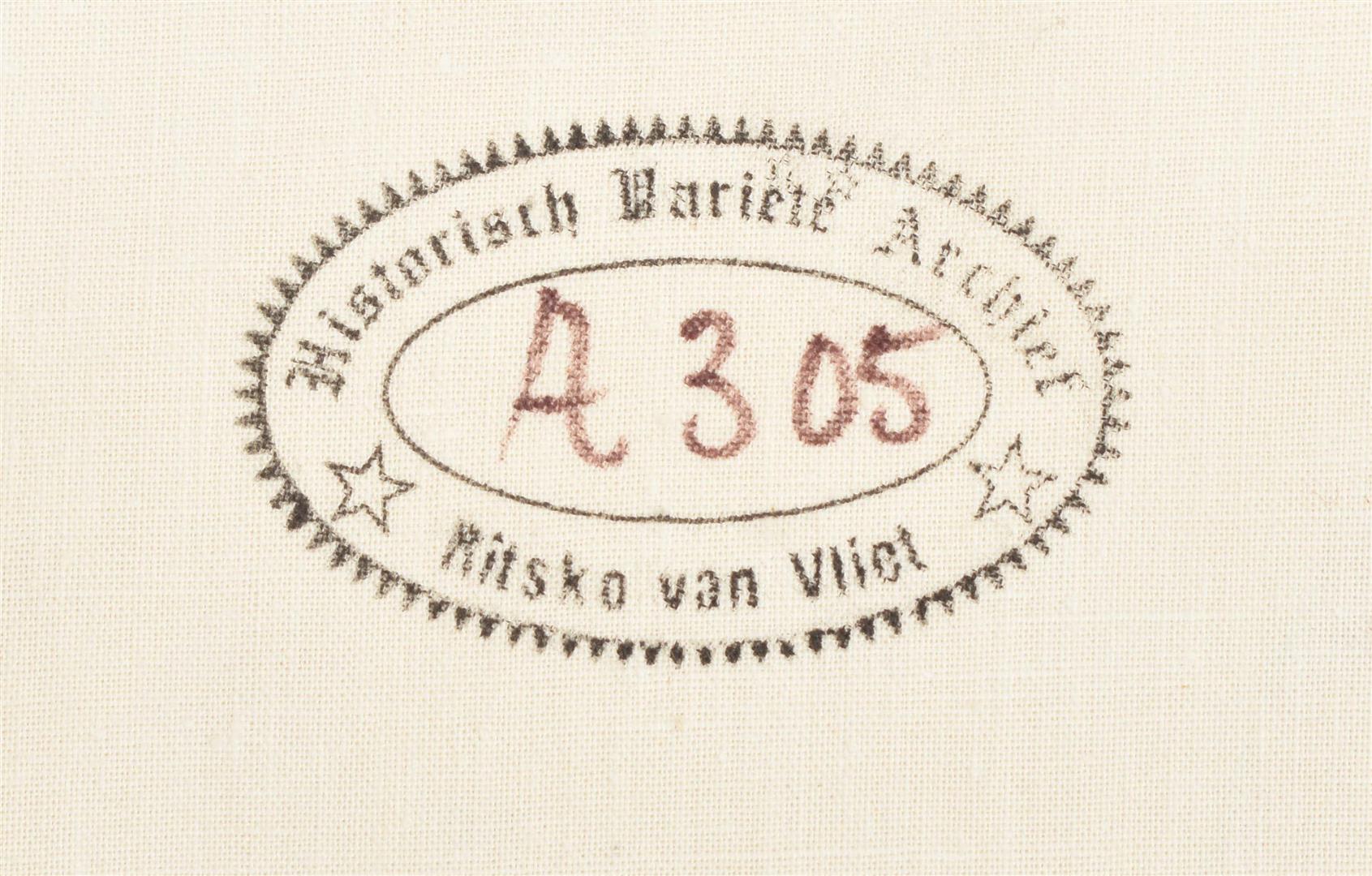 Stamp Historisch Variété Archief and 2 labels verso, linen backed. Folds, a few sm. holes.