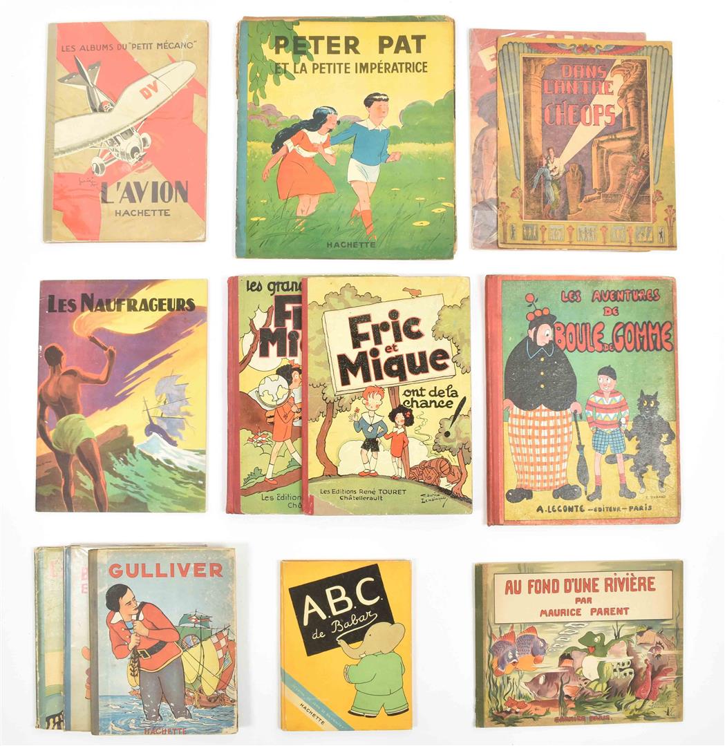 1950s to 1970s. Incl. a.o.: (1) Several Hachette comic publications, incl. Peter Pan (2 issues), Alice au pays des rêves and L'avion. Incl. a few French children's books publ. by the same. (2) L'inde fabuleuse. Ill. by A. Liquois. 1943. (3) Lemainque, M. Fric et Mique. 2 issues.