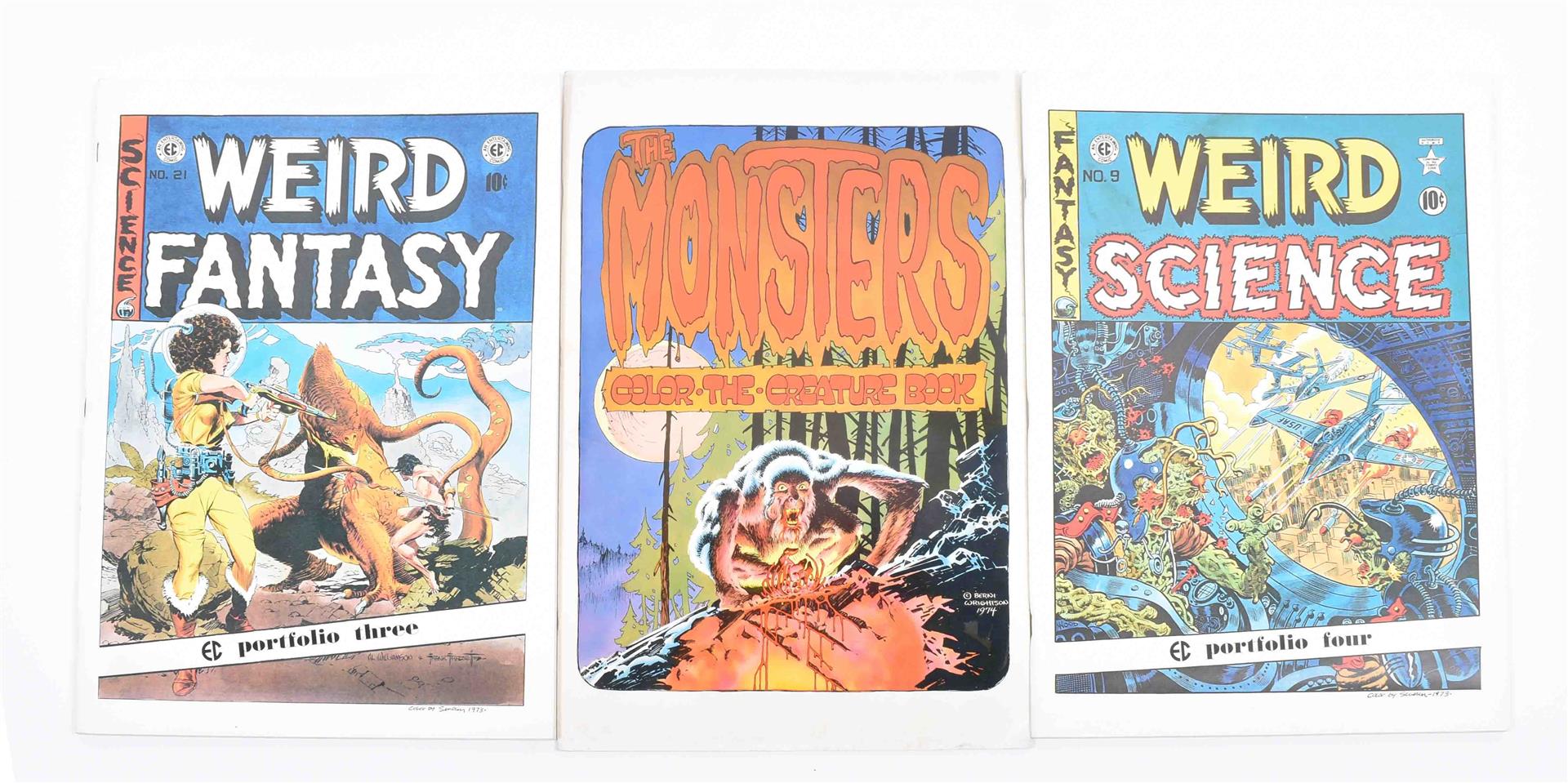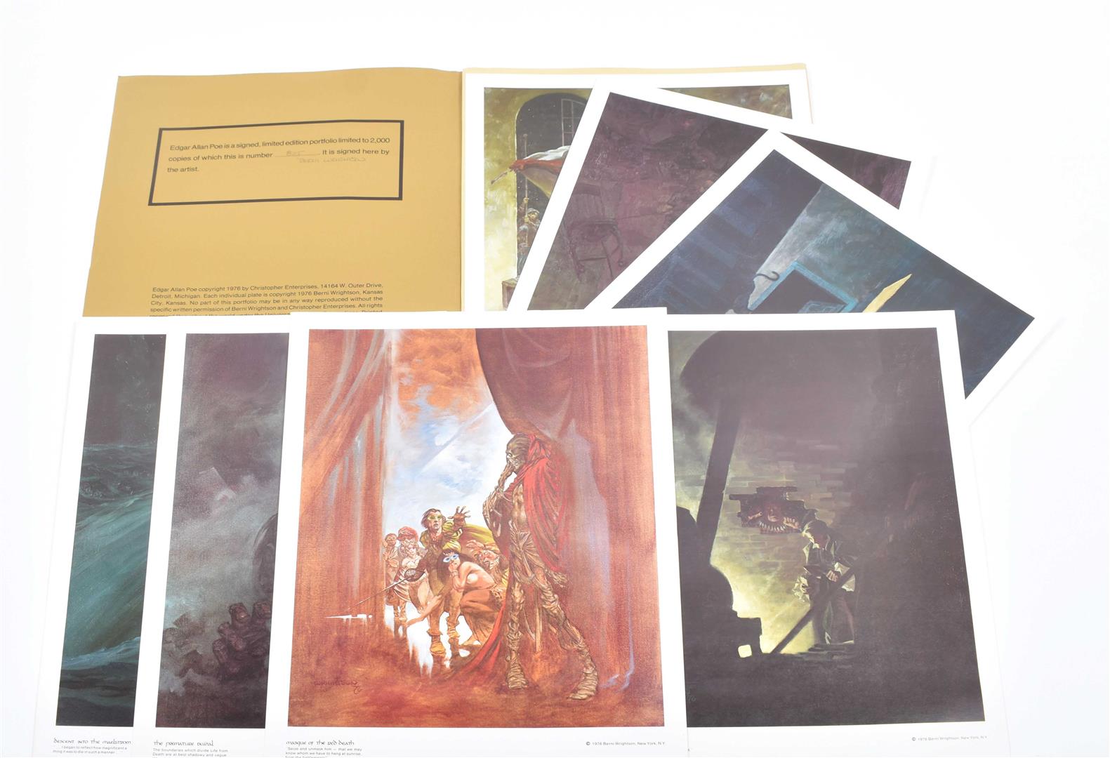 (1) Wrightson, B. The Edgar Allan Poe Portfolio. Detroit, Christopher Enterprises, 1976. No. 825/2000, signed in pen by Wrightson, 8 col. prints inspired by Poe stories. In orig. portfolio (sl. discol.). (2) Idem. The Monsters. Color the Creature Book. 1974. (3) Portfolios 3 & 4 of Weird Fantasy. 1973. -and 14 others, incl. Dragon Realm portfolio by Chris Miller and Dragons II portfolio by Lela Dowling.