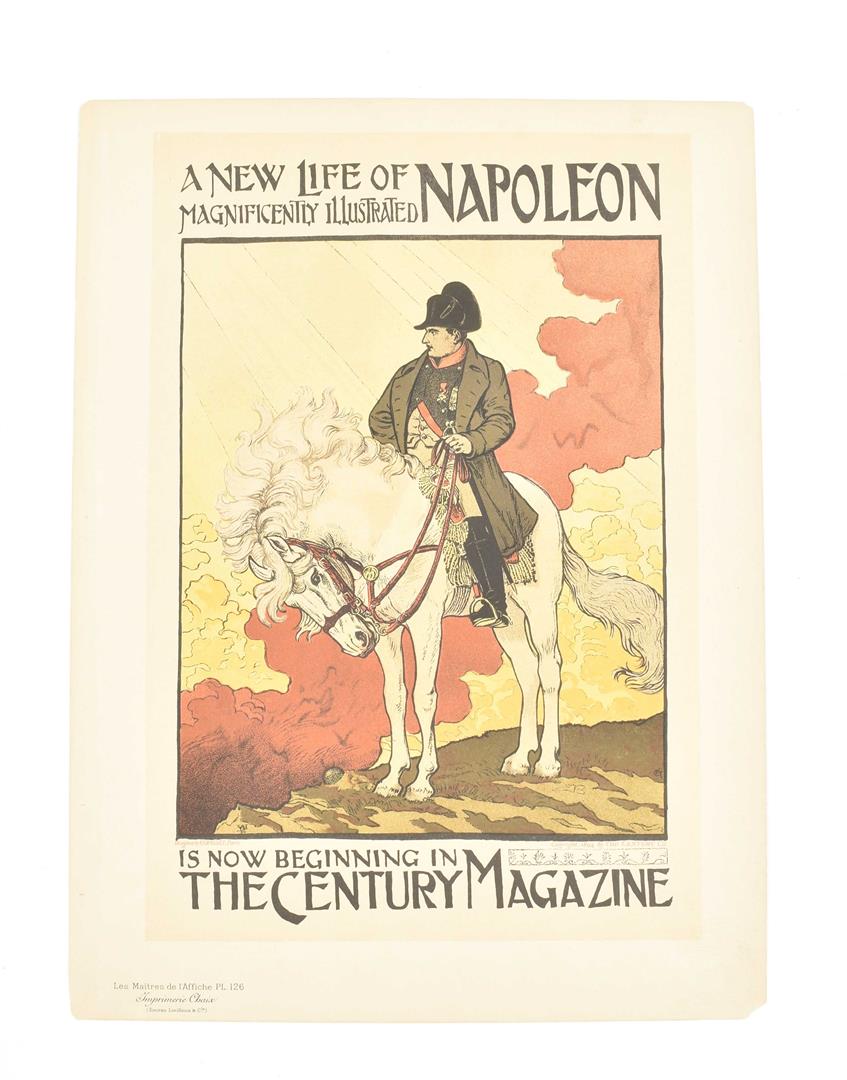 (1) L'Amant des Danseuses. Pl. 45. (2) A New Life of Napoleon Magnificently Illustrated. Pl. 126. Des. by E. Grasset. Ca. 1894. (3) 7me Exposition du Salon des 100. Pl. 15. Décembre 1894. All col. lithogr., approx. 40 x 28, w. blind embossed stamp of Imprimerie Chaix on lower right corner, inks by Lorilleux & Cie.