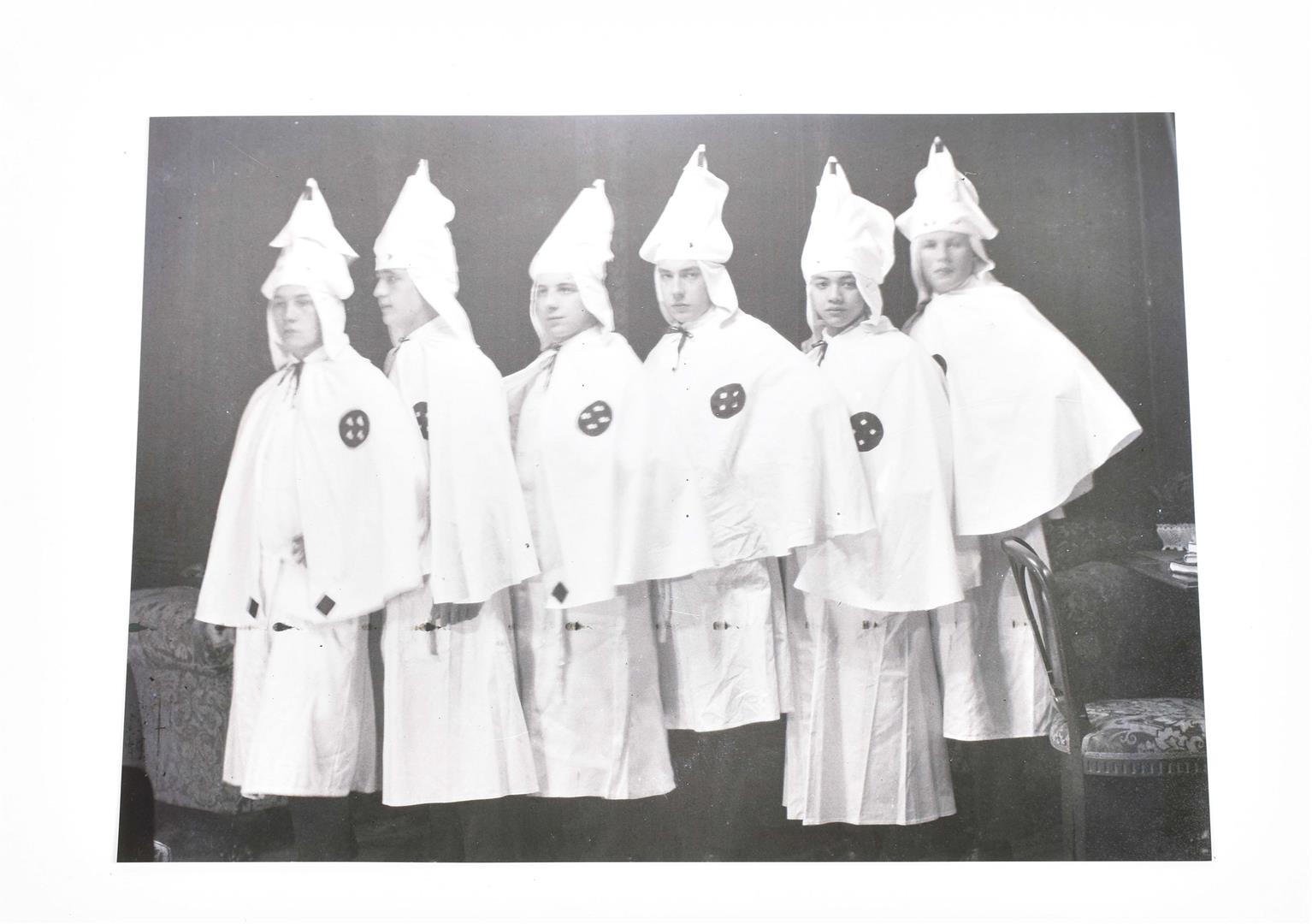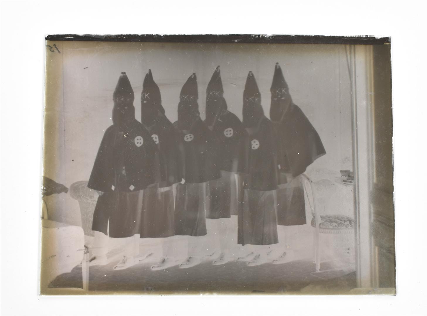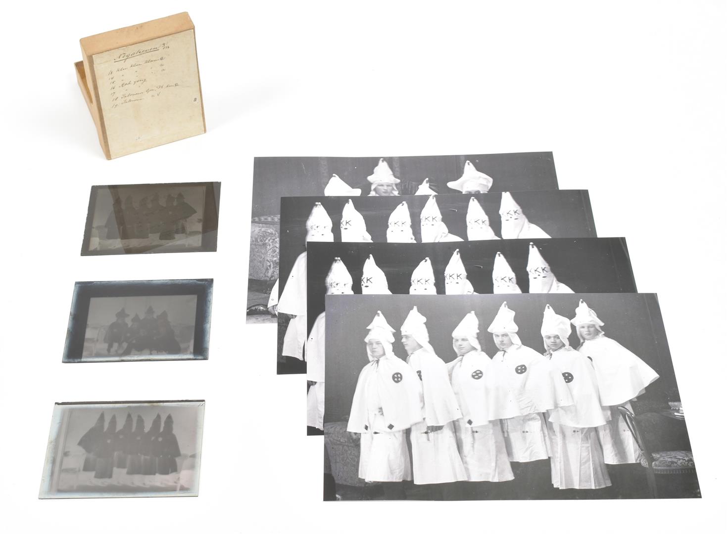 Depicting members of this racist and white supremacist group in their traditional outfits. Early 20th cent. All 9 x 12 cm. -and 4 modern prints of the images.
