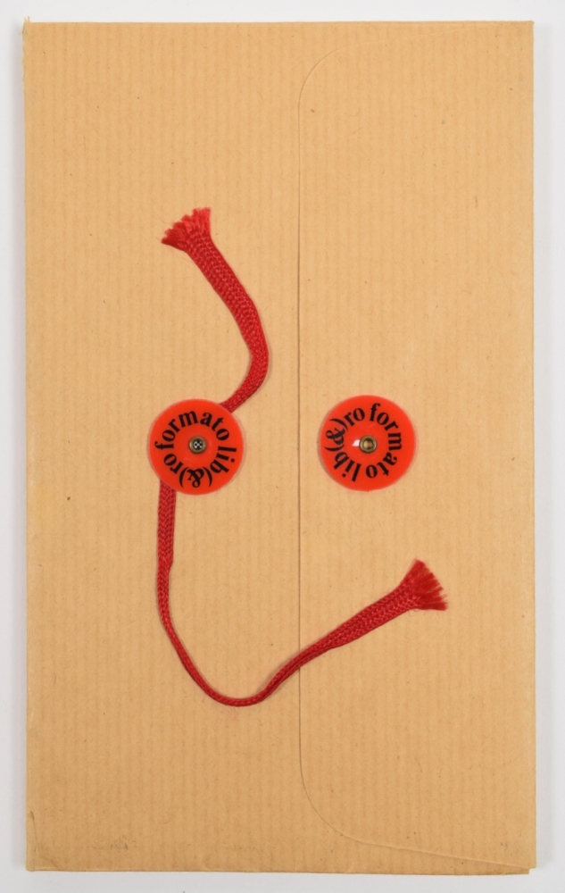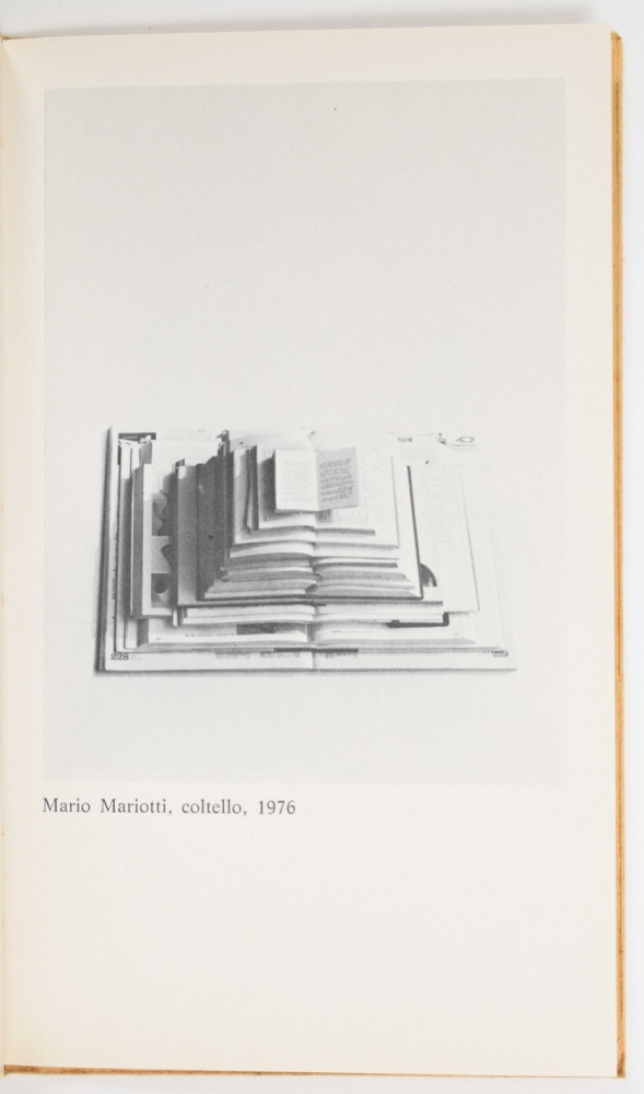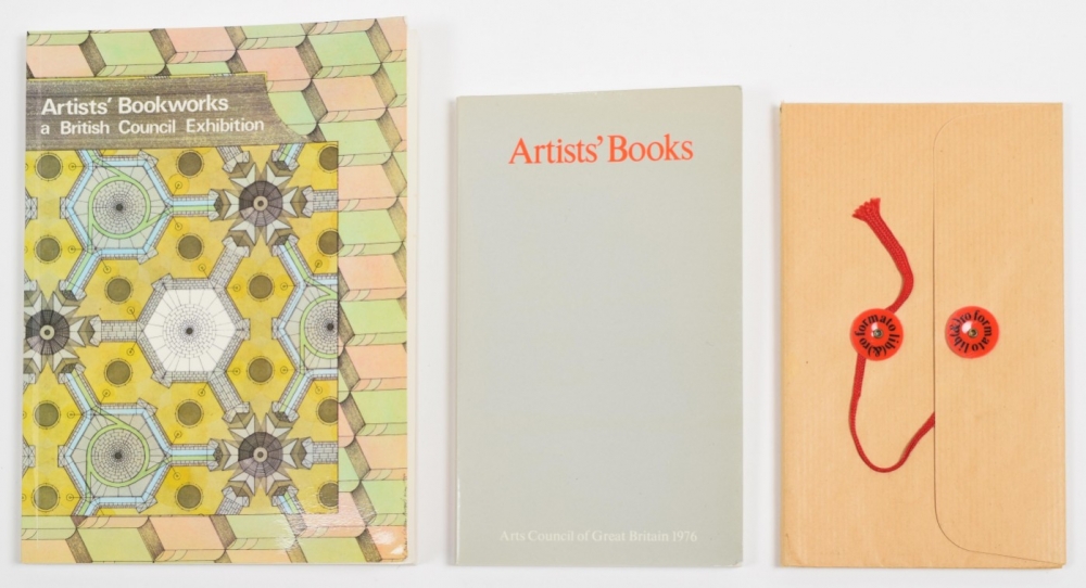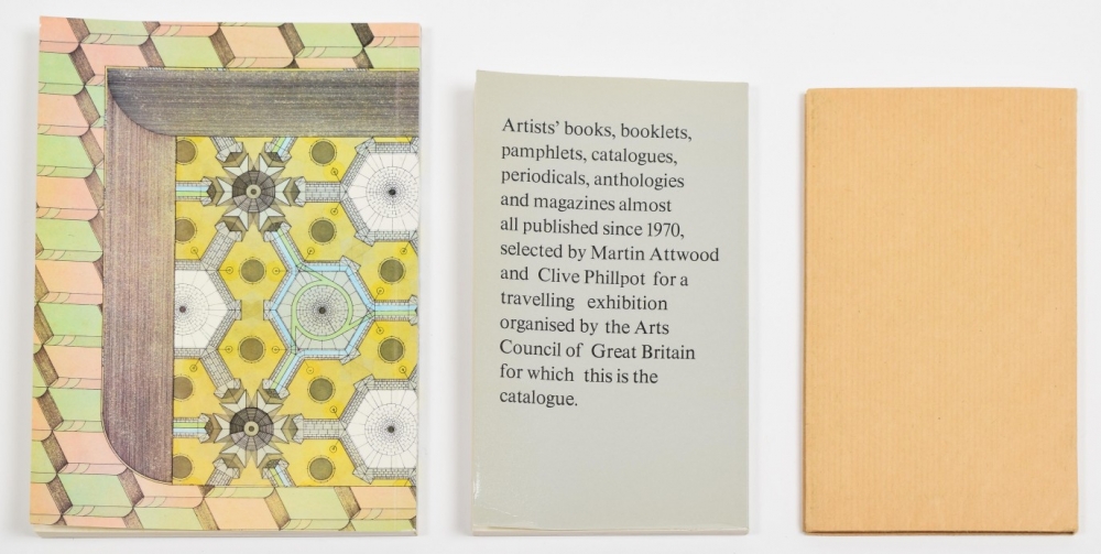 + Clive Phillpot and Martin Attwood, Artists' Books, Booklets, Pamphlets, Catalogues, Periodicals, Anthologies and Magazines Almost All Published since 1970, Selected for a Travelling Exhibition. London, Arts Council of Great Britain, 1976. 96 pp. Text in English. Very fine copy. + Maurizio Nannucci, Formato lib(&)ro. Mostra del libro / oggetto in Italia. Florence, Comune di Firenze, 1978. Catalogue on the theme of Book Objects. Edition of 1000, 32 pp. Booklet preserved in craft envelop with red buttons and ribbons, designed by Nannucci. Includes invitation card. Mint copy. (total 3)