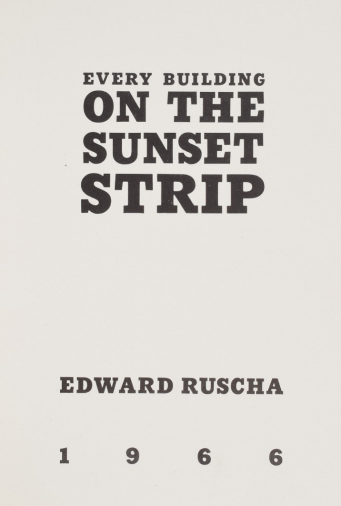 Los Angeles, Edward Ruscha, 1966. With sticker of the American distributor Wittenborn and Company of New York to inside back cover. First printing, issued in 1000 copies (with folding flap on the last complete leaf).