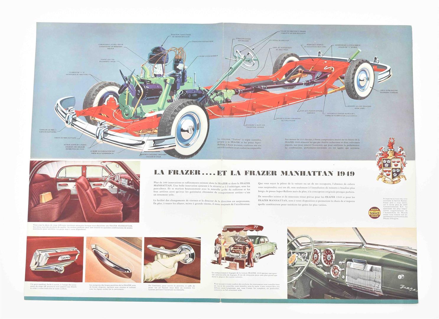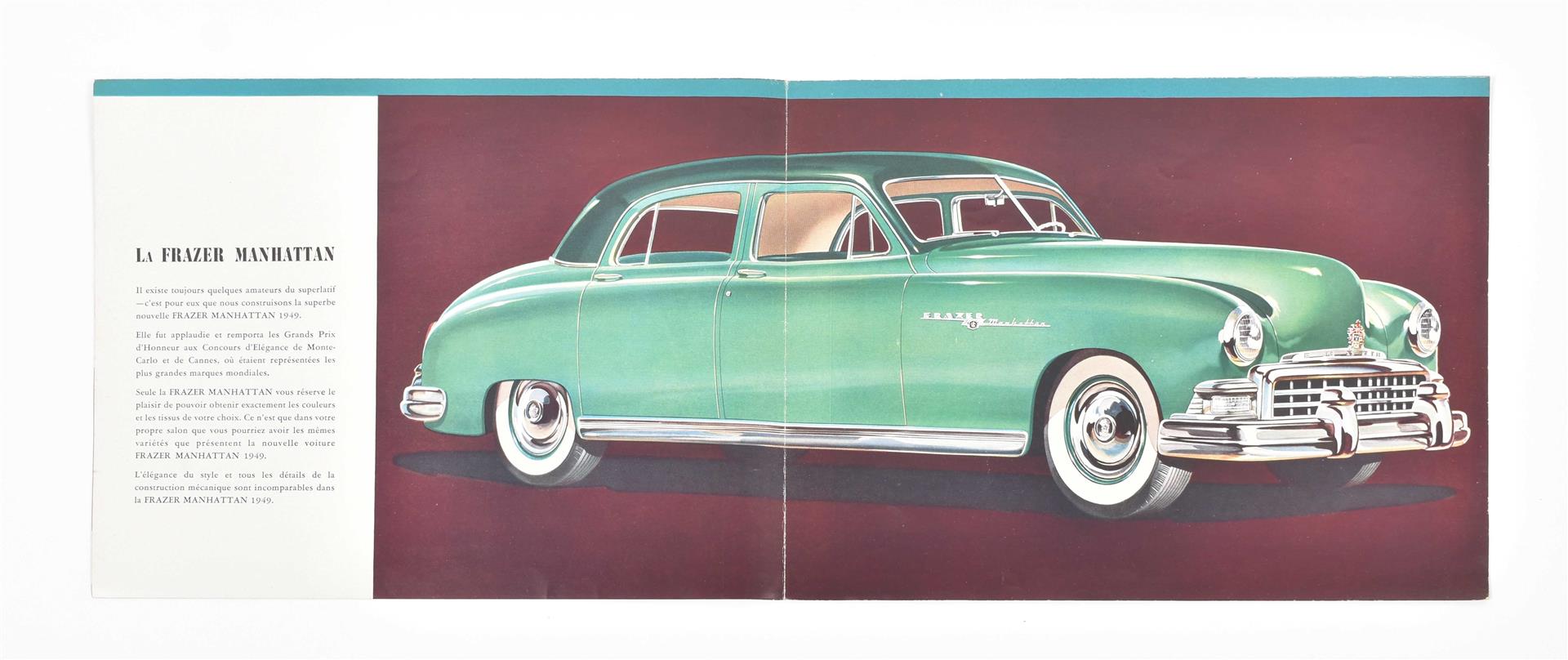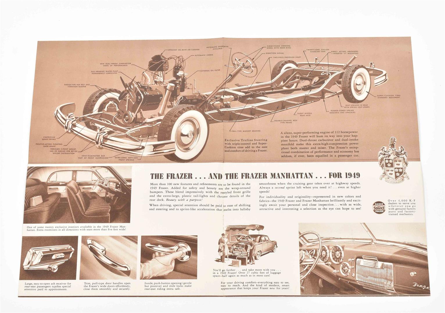 1940s and 1950s. Incl. a.o.: (1) The Frazer for 1949. Fold-out brochure. (2) When you buy a used car, drive the style leader. A used Kaiser or Frazer is still the newest car on the road. Fold-out brochure. (3) LA Frazer 1949. Fold-out brochure. 2 copies. -and 9 others (1 duplicate), all on Frazer and Kaiser.