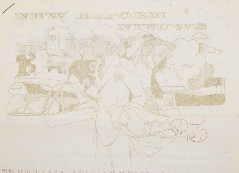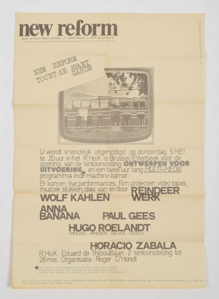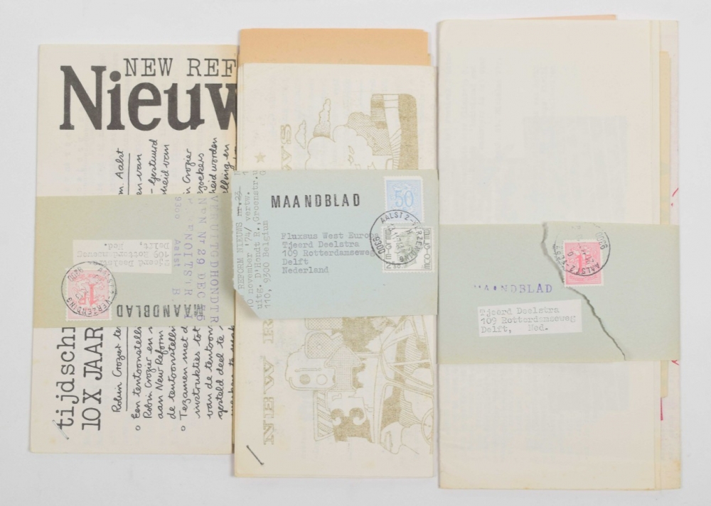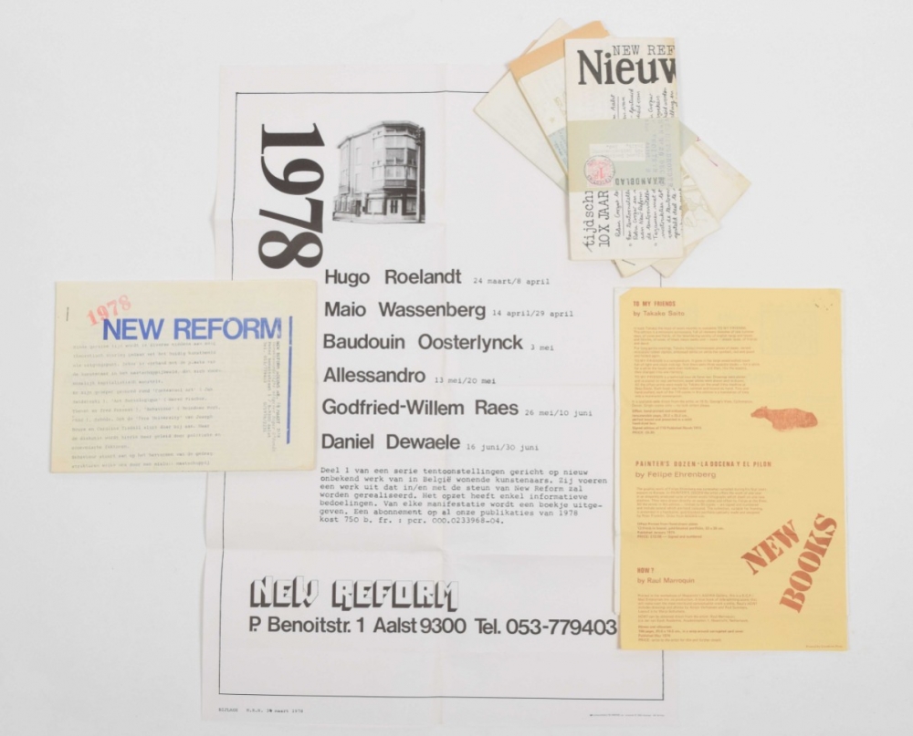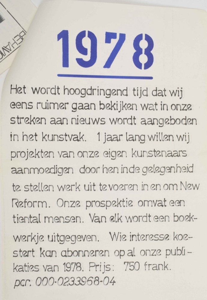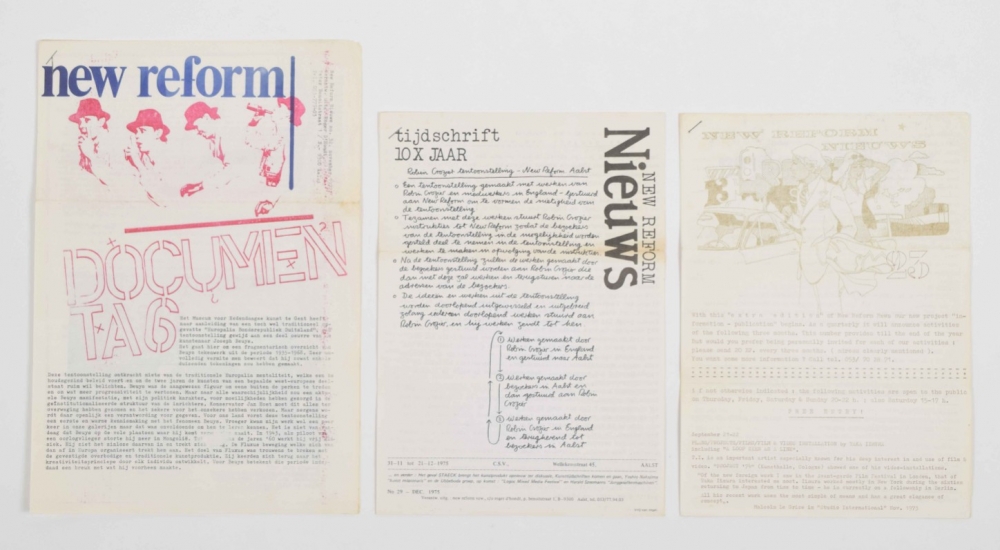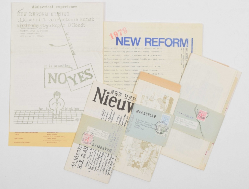 Belgian experimental artspace in Aalst run by Roger d'Hondt. Includes 5 issues of New Reform Nieuws: No.23 1974, No.24 & 29 1975, No.32 1977 and No.34 1978.