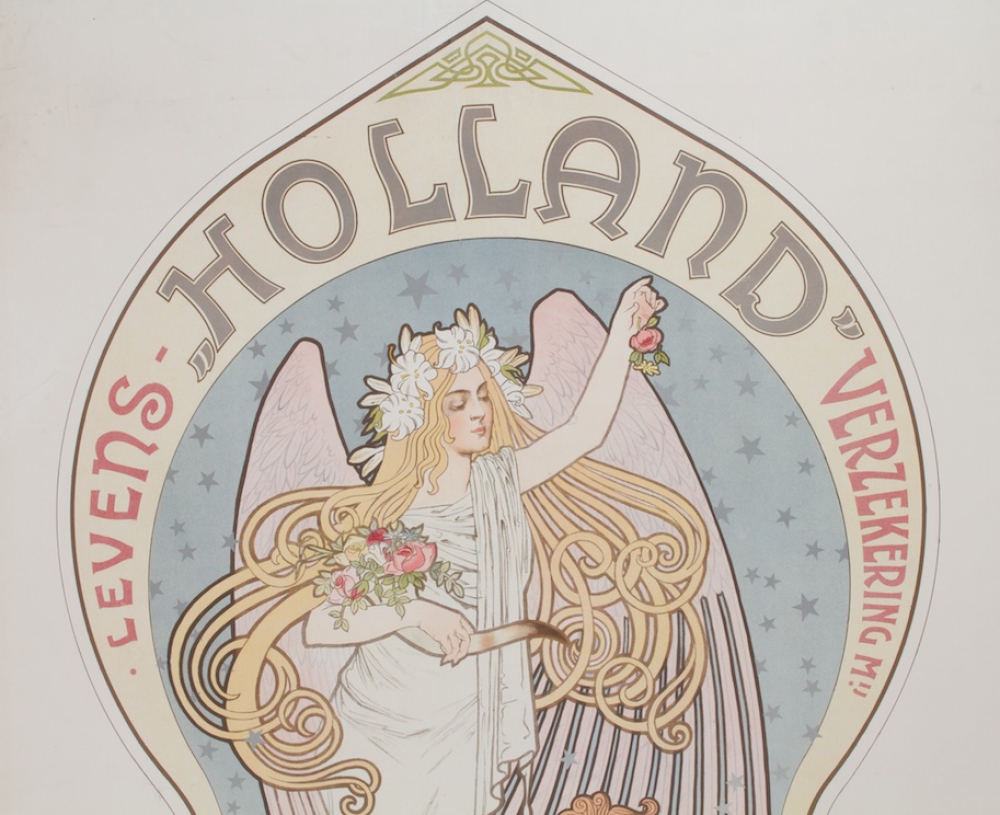 Levensverzekering Mij Holland, Amsterdam. Ca. 1900. Lithography by Leer, Amsterdam. 107 x 63,5cm.
