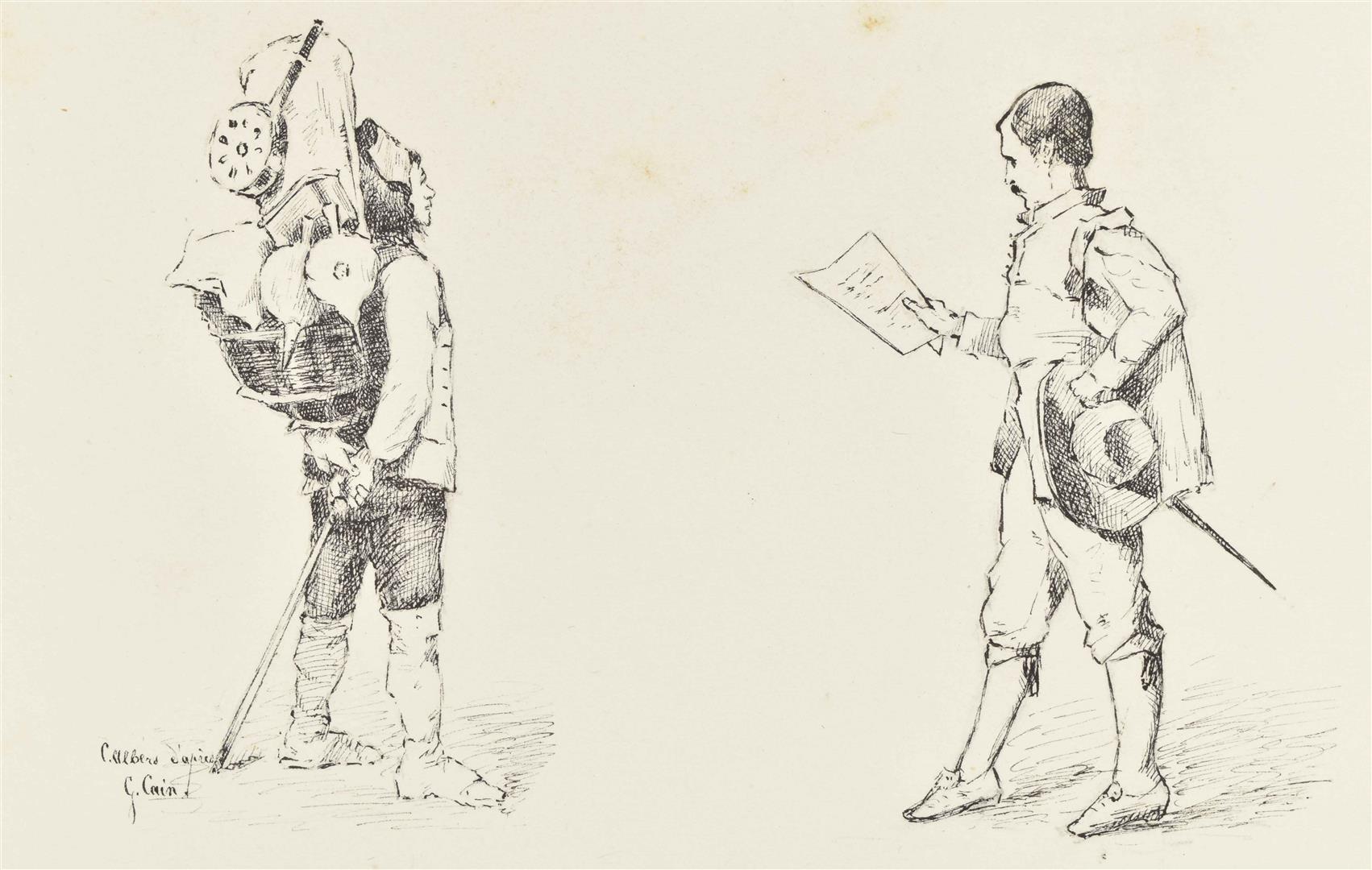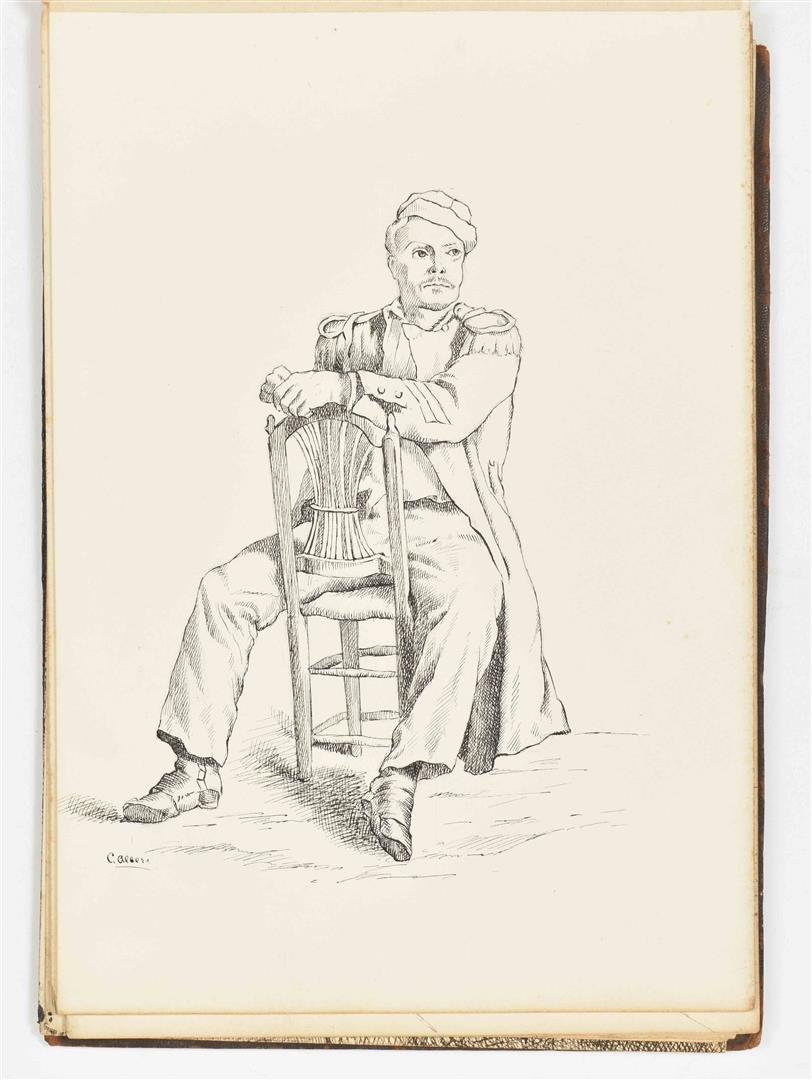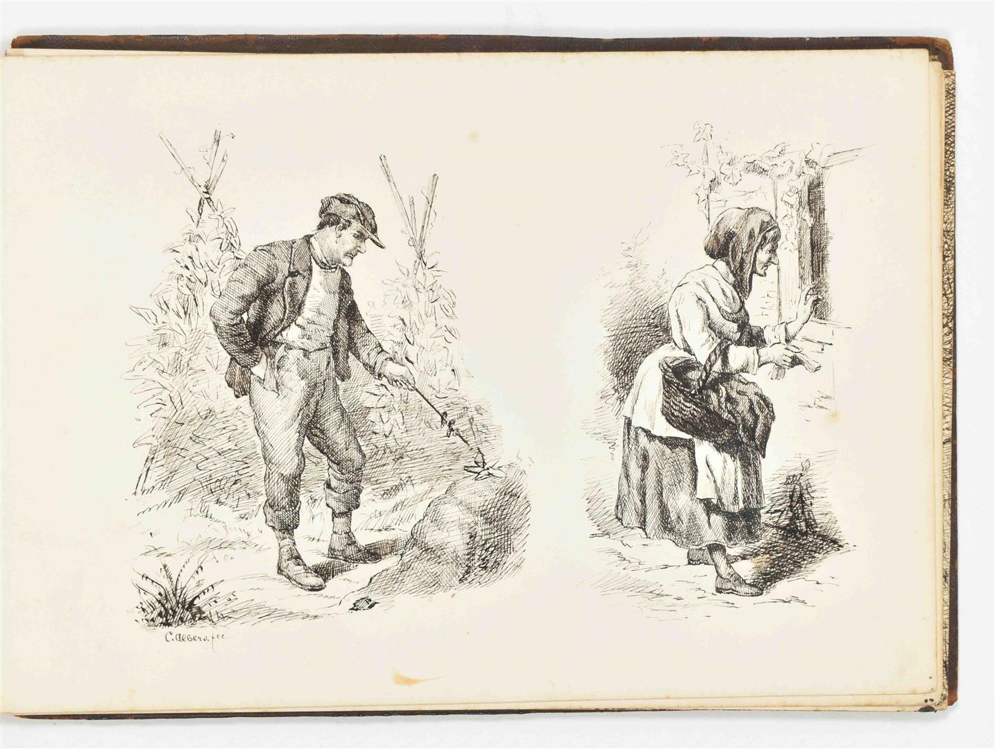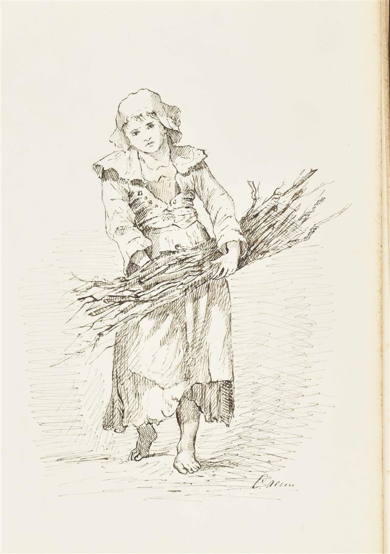 Ink and mixed technique. 20 lvs, 18 x 24 cm. Majority signed 'C. Albers', some dated 1883 and 1884. Original compositions and studies after a.o. Gustave Doré, Julien Dupré, Georges Cain, Frederik Hendrik Kaemmerer. Leather album inclusing a (presumably) photographic portrait of the artist. Album detached.