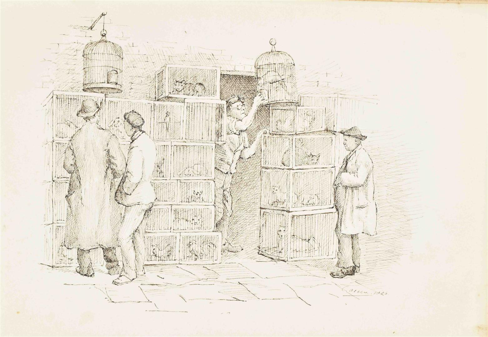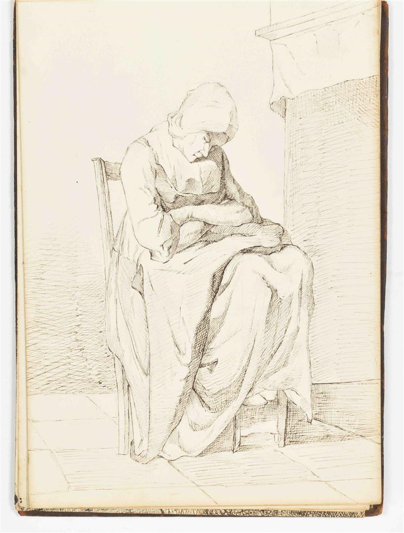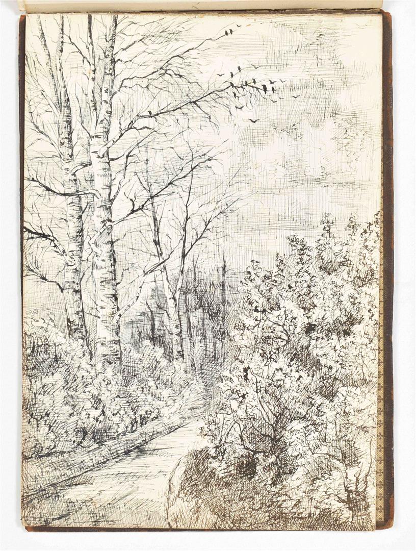 Ink and mixed technique. 20 lvs, 18 x 24 cm. Majority signed 'C. Albers', some dated 1883 and 1884. Original compositions and studies after a.o. Gustave Doré, Julien Dupré, Georges Cain, Frederik Hendrik Kaemmerer. Leather album inclusing a (presumably) photographic portrait of the artist. Album detached.