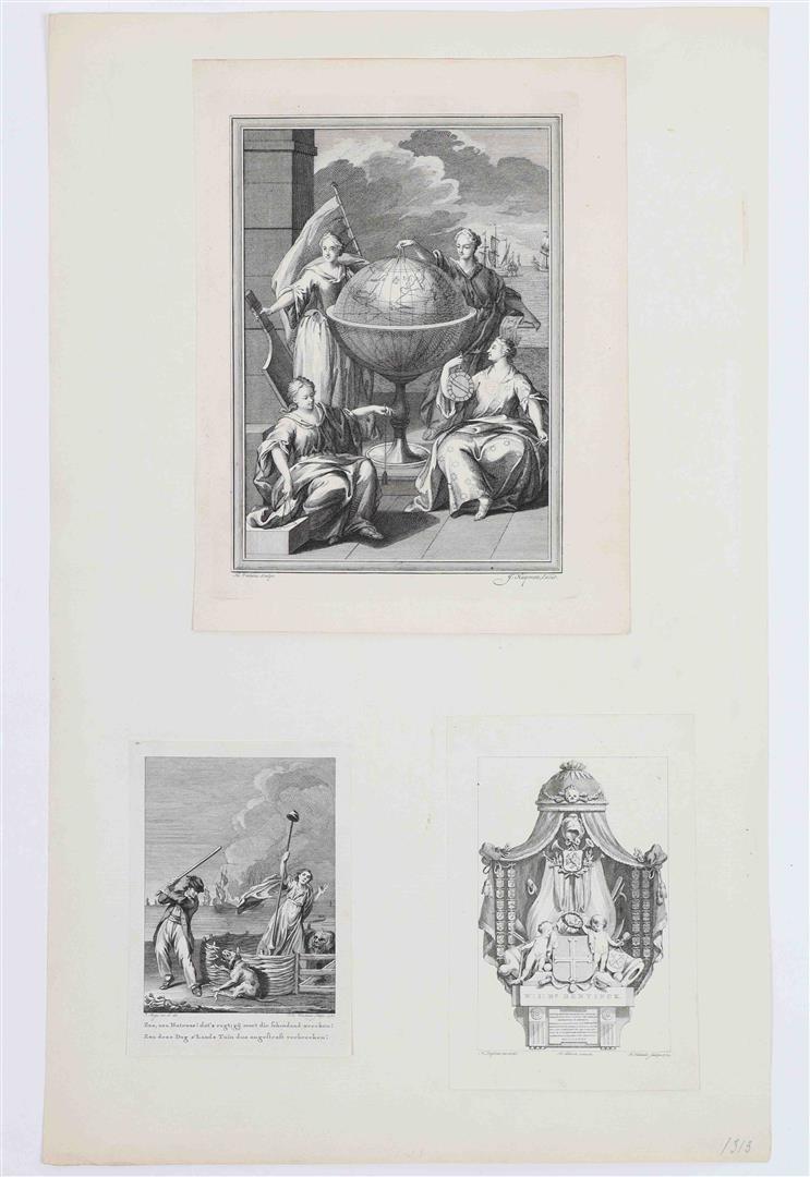 Seven various prints: (1) Scherm, Laurens (1672-1702). (Frontisp. for the Atlas Major