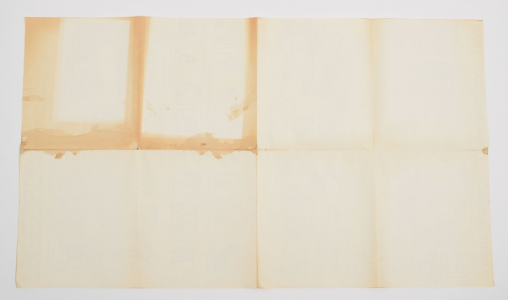 New York, Dwan Gallery, 1970. Poster, offset lithograph on tan paper. 96.5 x 55.5 cm. Folded as issued in 8 parts. Announcement for Smithson's film screening at Dwan gallery, October 31 - November 25, 1970.