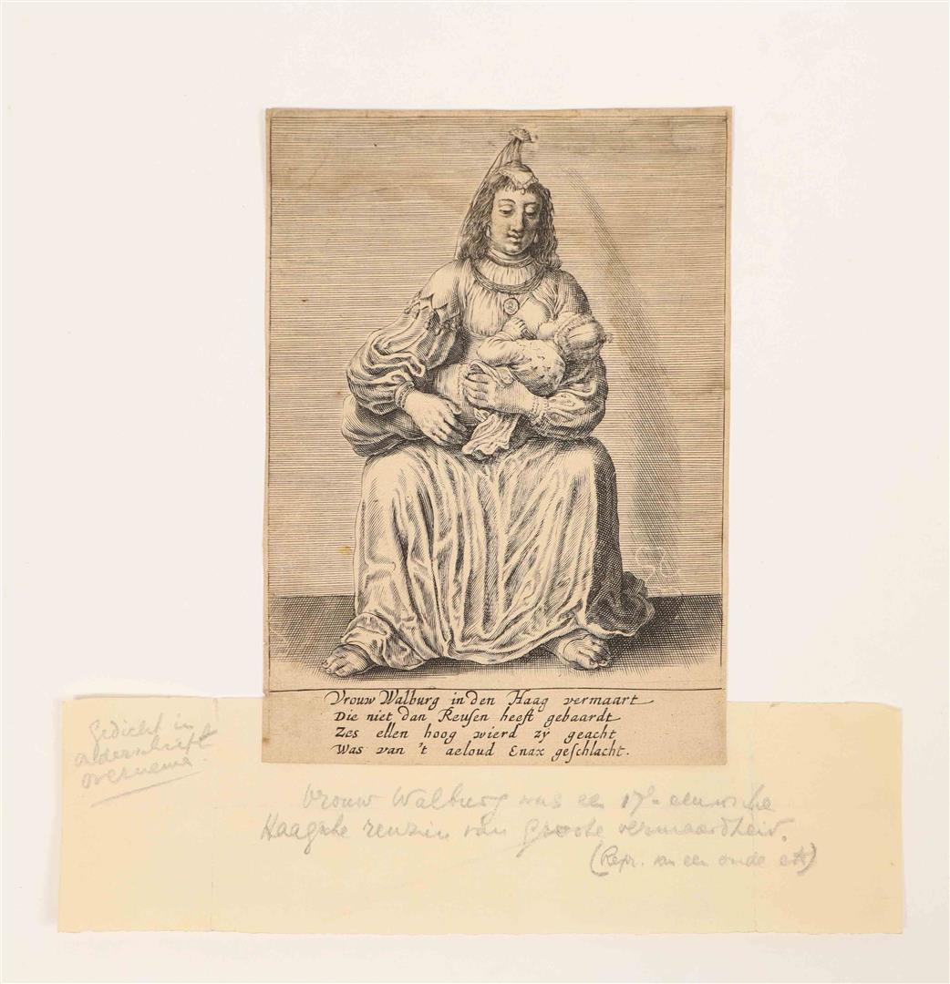 Seven miscellaneous (very rare) prints: (1) "Vrouw Walburg in den Haag vermaart,