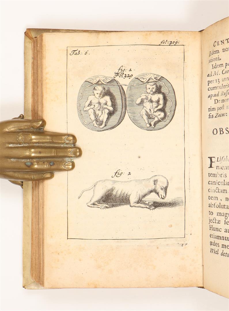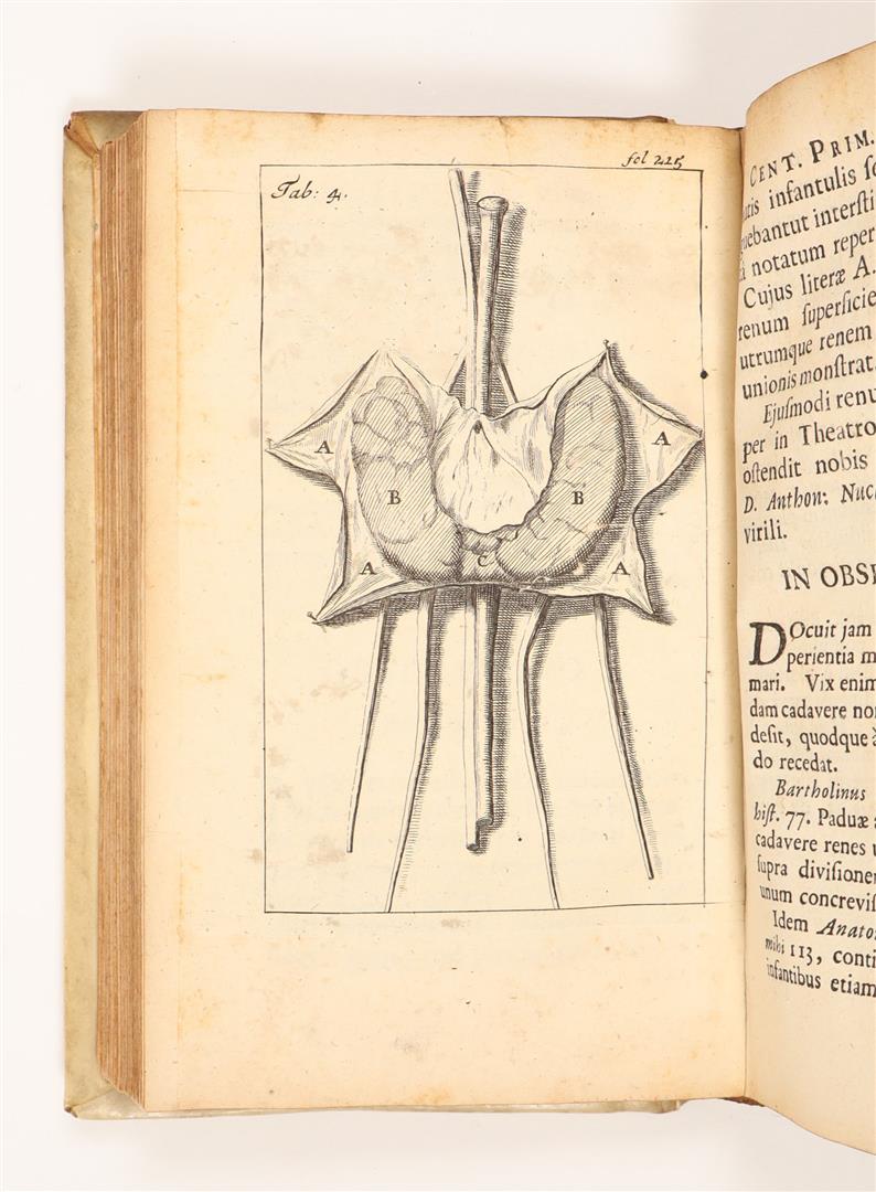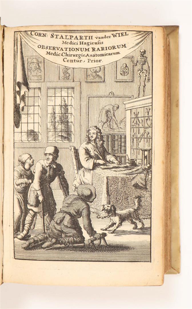 medic anatomicarum chirurgicarum centuria prior; accedit De unicornu dissertatio. Leiden, P. vander Aa, 1687. 1st ed. (32),516,(16) p. With engr. title, portrait of Stalpart and 8 engr. plates (3 folding). Contemp. vellum.