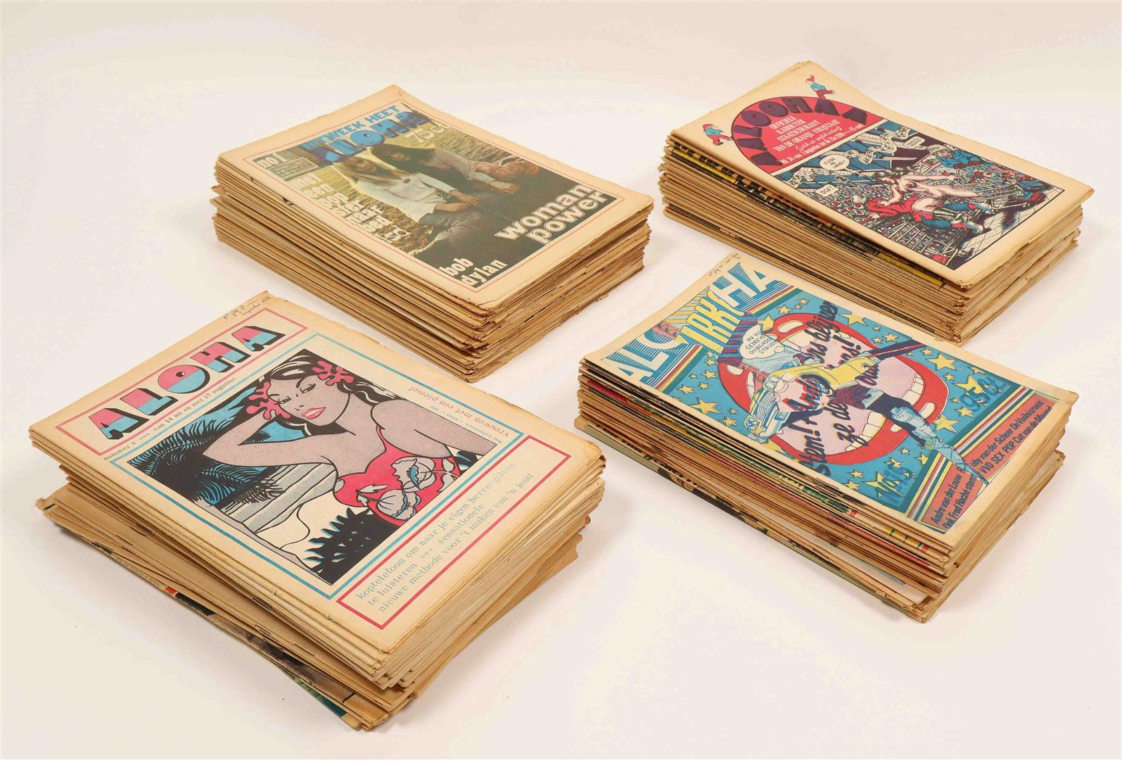 (1) Hitweek. 1965-69. Near-complete series, lacking only year 1 nos. 1, 6, 8, 46 and year 2 nos. 31, 32. Orig. wrs. Folded. (2) Aloha. 1969-73. Complete series. Year 3, nos. 14-26 (bound together), others in orig. wrs.
