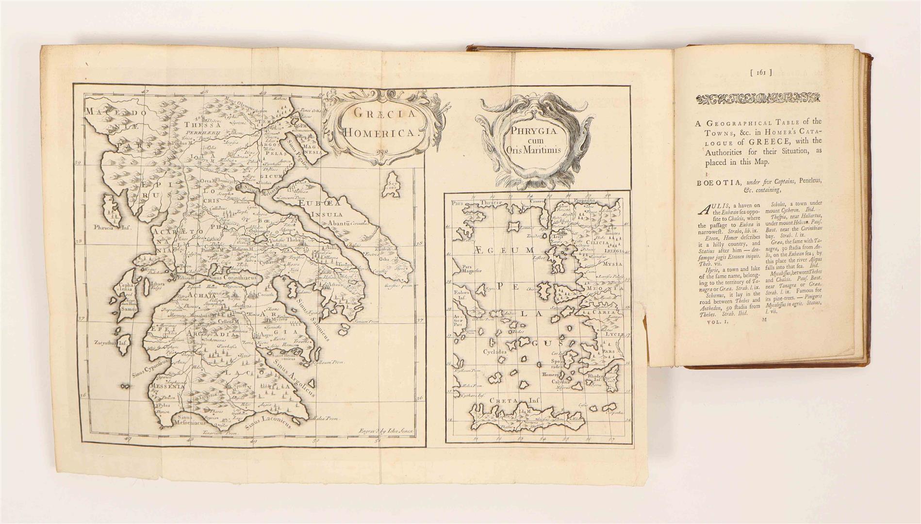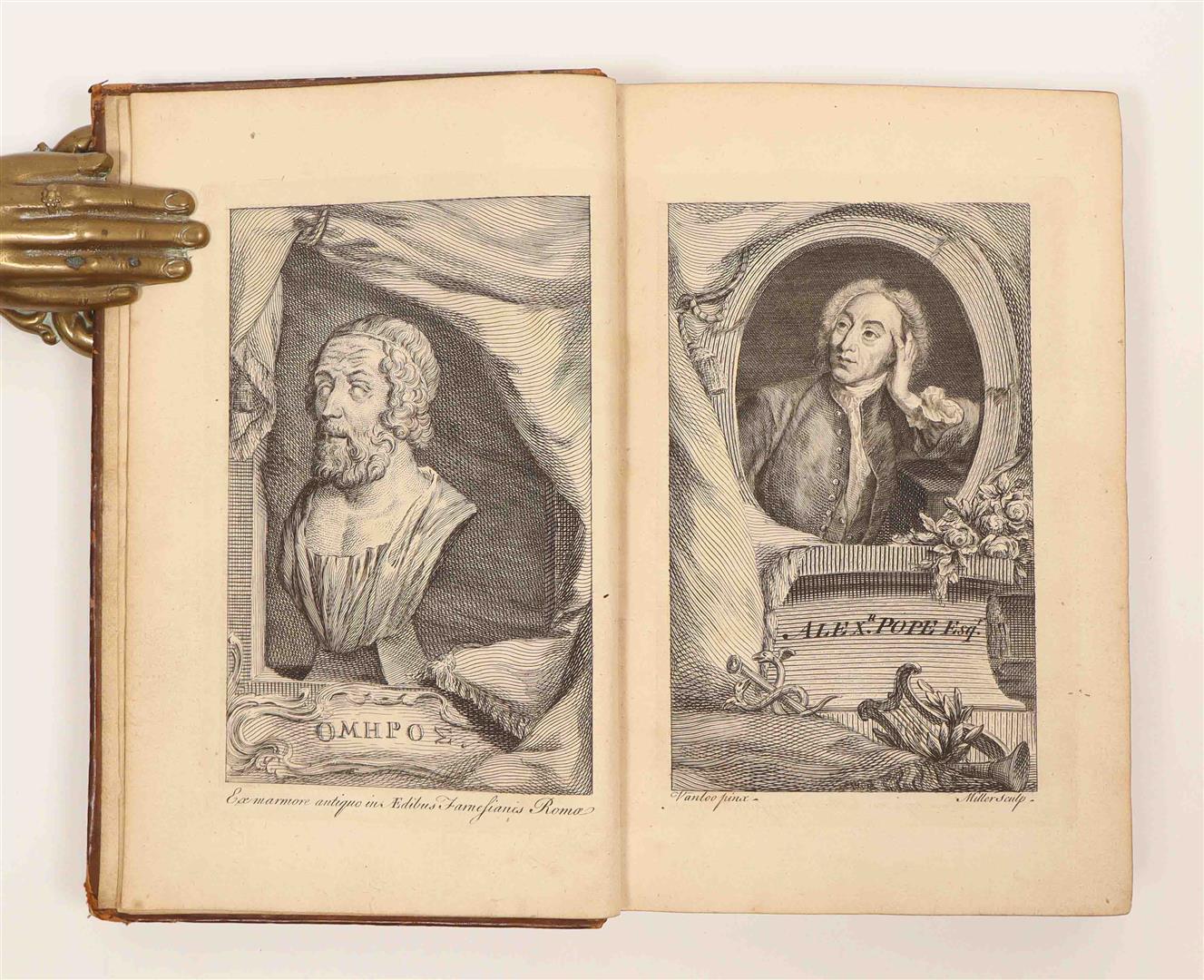 London, C. Rivington, 1760. 6 vols. With two engr. portraits, engraved vignettes, folding map, folding view and folding plate. Contemp. unif. speckled calf w. gilt and ribbed spine and contrasting mor. letterpieces. Bookplate on pastedowns.