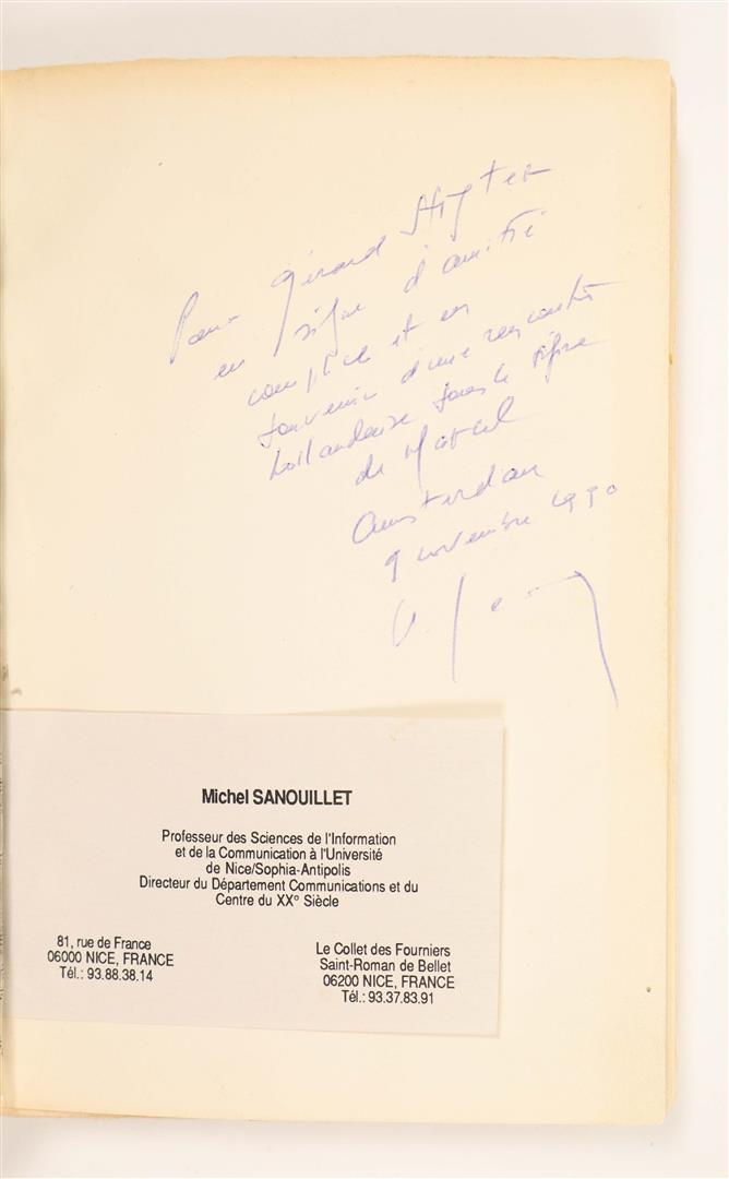 Paris, Le Terrain Vague Collection 391, 1959. Softcover, 19 x 14 cm, 231 pp. Edited by Michel Sanouillet. With bibliography by Pupard-Lieussou.