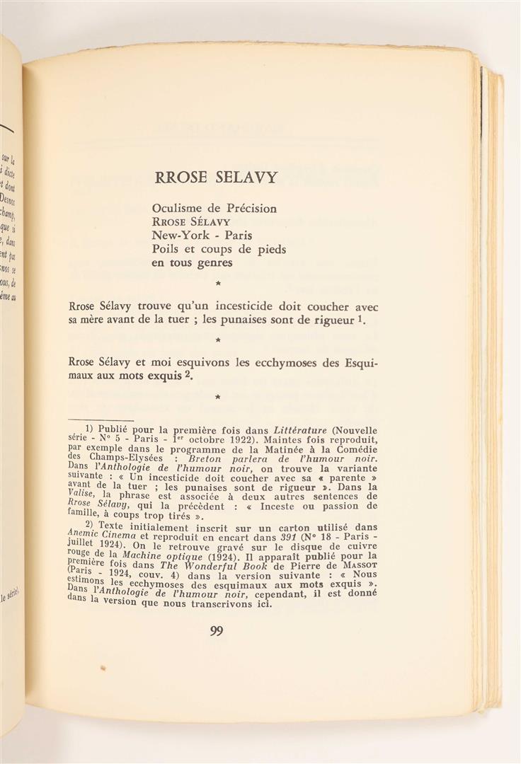 First edition. One of 2000 copies of the trade issue, text in French. Complete with the transparent folding sheet featuring La Marieé Mise a Nu par ses Célibataires, Même (The Bride Stripped Bare by Her Bachelors, Even). Contains a dedication to Gerard Stigter (K. Schippers) dated 1990, with inlaid address card of Michel Sanouillet. Some notes on interior of front cover, moderate creasing and rubbing on spine and cover. Generally a good copy.