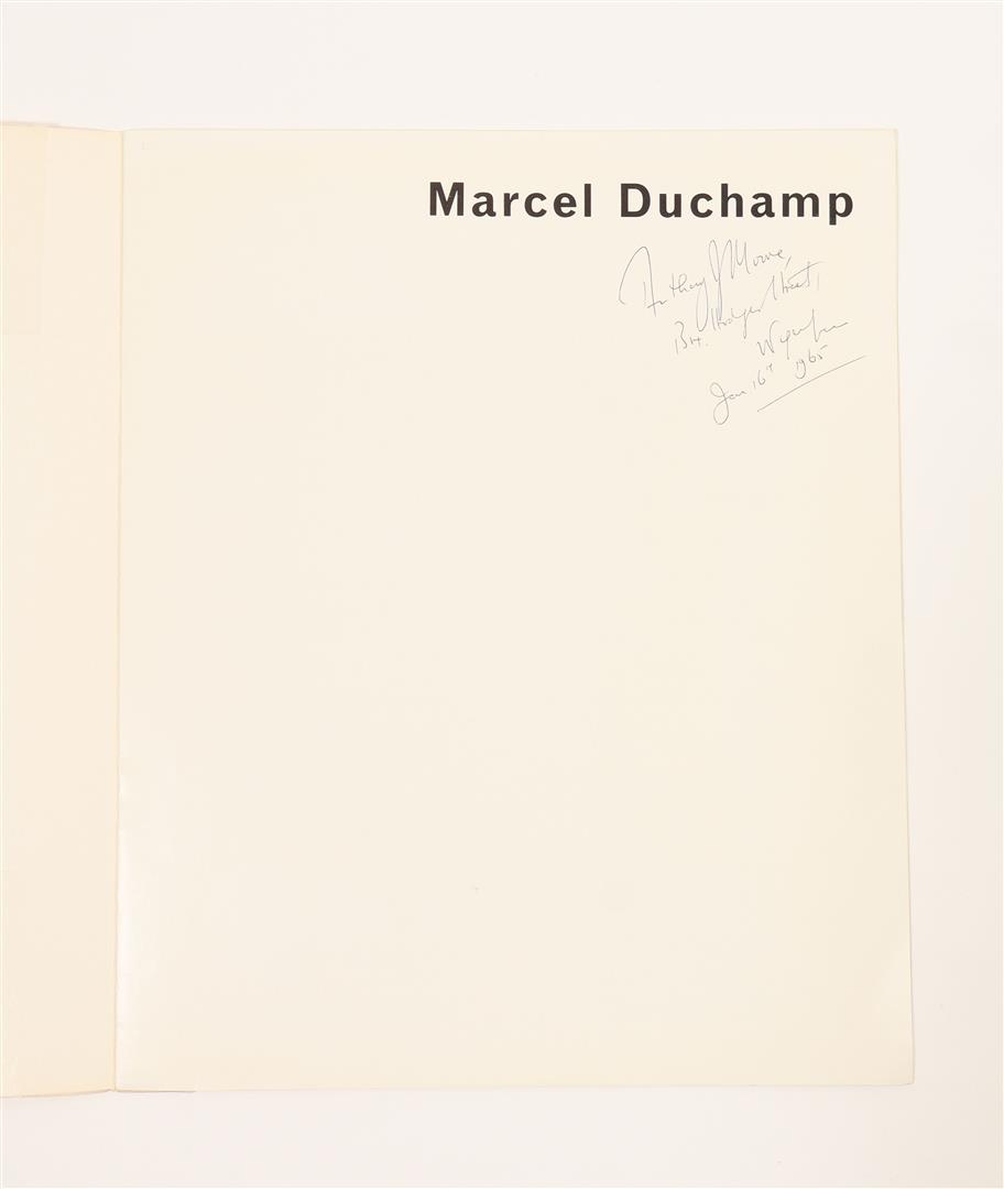 (3) Marcel Duchamp, meme. Hannover, Kestner Gesellschaft, 1965. Staplebound, 21 x 16.5 cm, 76 pp. Catalogue for the travelling show (see above) edited by Wieland Schmied with exhibition list, biography, b/w images and advertisements. Light fold on rear cover, good copy. (4) The almost complete works of Marcel Duchamp. London, Arts Council, 1966. Softcover, 29.5 x 21 cm, 110 pp. Profusely ill. in b/w and colour, with several fold-outs. Green paper wrapper with embossed title on front and die-cut circle on rear. Catalogue for the Duchamp show at the Tate Gallery, the first retrospective exhibition devoted to the artist in Europe, with text by Richard Hamilton. This is the second edition, published in an edition of 2500. Unfortunate wear to spine and rubbing to corners and edges, interior fine. (total 4)
