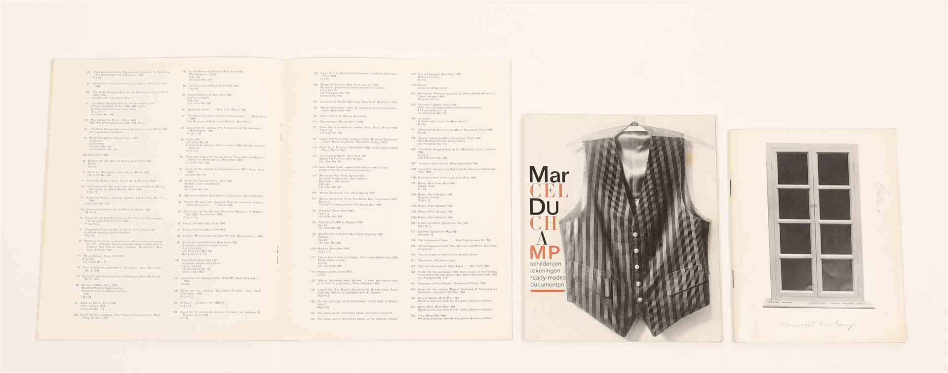 (1) Marcel Duchamp. London, Gimpel Fils, 1965. Softcover, 28 x 22.5 cm, 8 pp. Extensive list of 173 exhibited items and biographical notes. Accompanies the exhibition held from December 1964 to January 1965, curated by Arturo Schwarz and first presented at his gallery in Milan, before a four-year European tour to Bern, The Hague, Eindhoven, and Hannover. Good copy in protective glassine wrapper. (2) Marcel Duchamp schilderijen tekeningen ready-mades documenten. The Hague/Eindhoven, Haags Gemeentemuseum/ Stedelijk van Abbemuseum, 1965. Softcover, 22.5 x 19 cm, 44 pp. Catalogue for the travelling show (see above) with exhibition list of 188 items, biography and b/w images. Text in Dutch. Small stain on cover, else good.