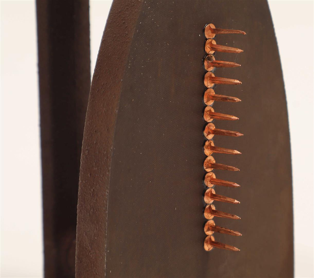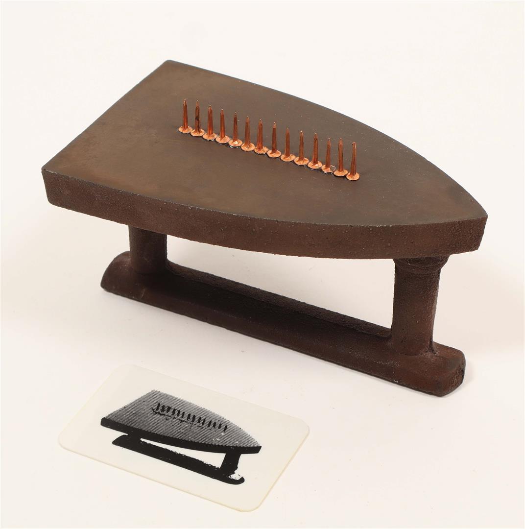 Multiple, cast iron sculpture with bronze patina and copper nails, ca. 16.5 x 10 x 9.5 cm. Signed, titled and numbered in white paint on the handle. This work is number 2033 from the edition of 5000 produced at the Mirano Foundry in Venice and published by Luciano Anselmino, Turin, 1974. In the original styrofoam and cardboard packaging, with numbered certificate card and leaflet. In excellent condition.