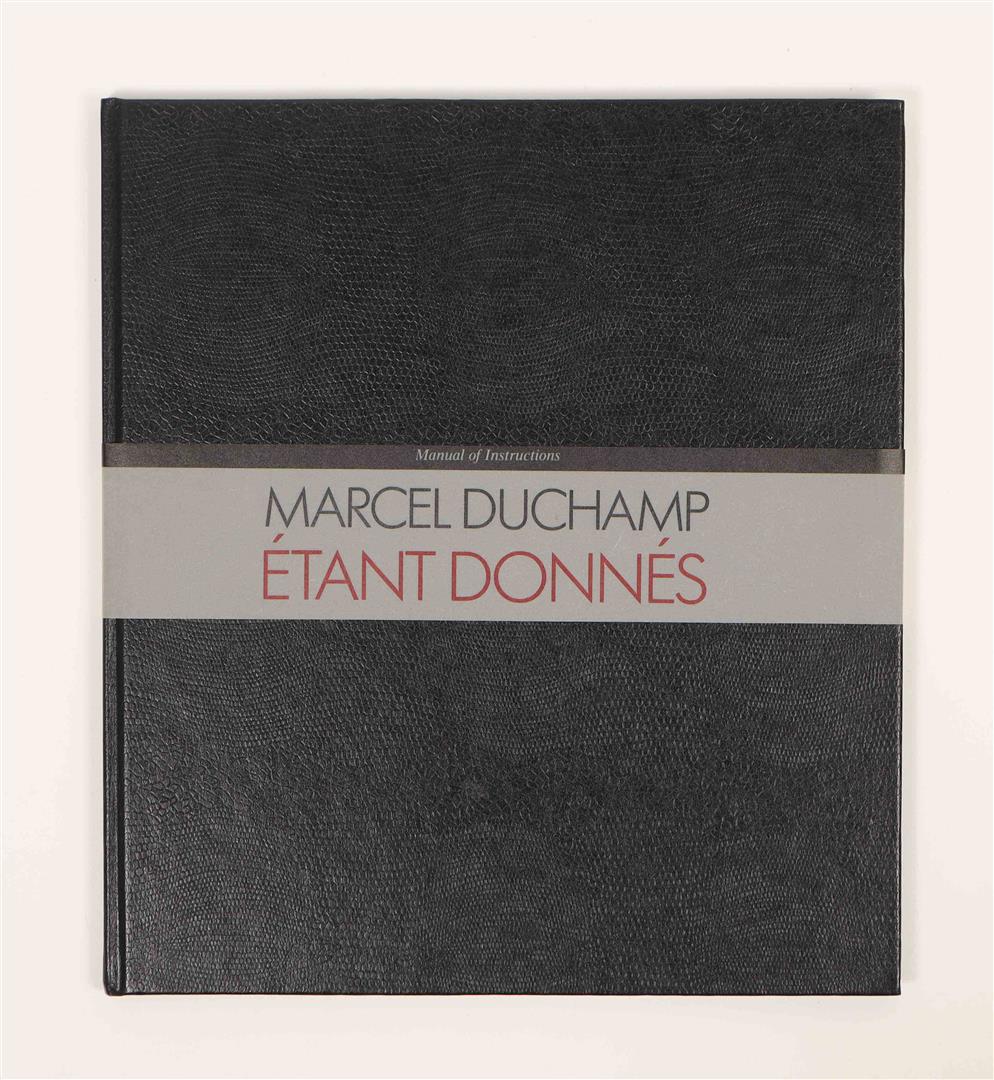 (1) Marcel Duchamp, Manual of Instructions Of Etant Donnés: 1° La Chute D Eau 2° Le Gaz D Eclairage. Philadelphia, Philadelphia Museum of Art, 1987. Black faux-leather boards, 30.5 x 27 cm, 57 pp. Facsimile of a notebook by Marcel Duchamp, with loosely inserted introduction by Anne d'Harnoncourt in English. With original belly band.