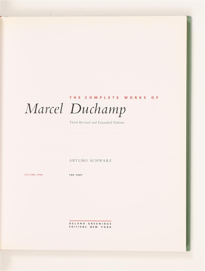 English-language edition of the definitive and comprehensive catalogue raisonné of the Dada and Surrealist master. Heavy set, approcimately 7 kgs. Light sunning to wrapper, Volume 2 with tiny tear to wrapper's edge, moderate rubbing to black slipcase, generally a good copy.
