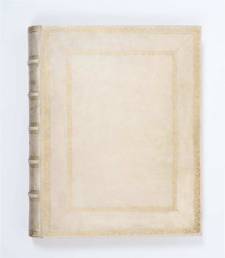 d'Ondergang van syn stad en syn ballingschap. Treurspel. (Met inl. d. L. Simons). Haarlem, Erven F. Bohn, 1893(-1901). 2 vols. in 1. (8),63,88,(18); (2),122,(2) p. W. col. lithogr. half-title and title-p., full-p. col. lithogr. plates (at the end of vol. 1), num. col./ tinted text-vignettes, 2nd part w. musical scores. Finely bound by Boekbinderij Wed. A. Anderson & Zoon in contemp. gilt-dec. double-paneled vellum, a.e.g. Folio.