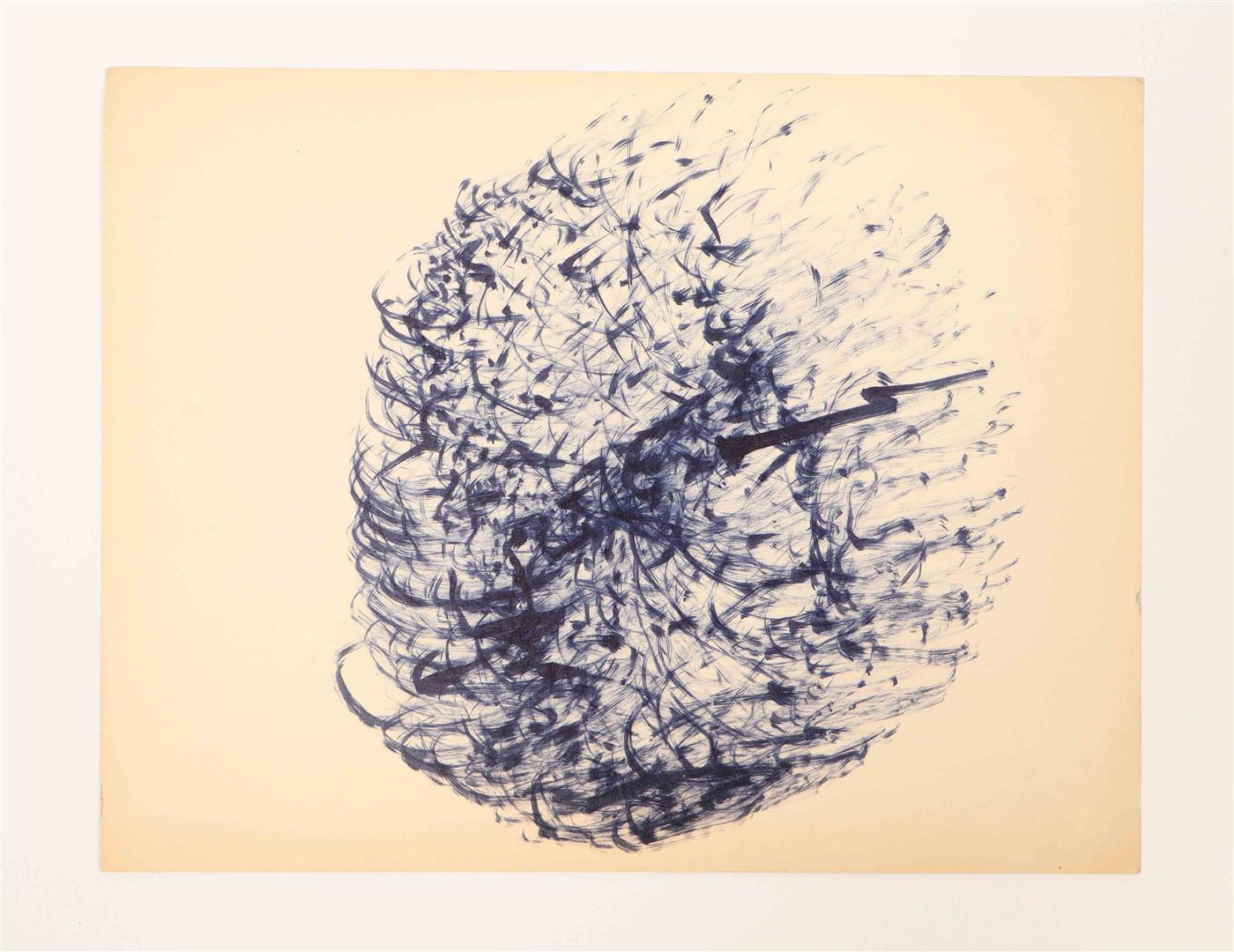 Meta-Matic No. 8 (1959) is held in the Moderna Museet collection. The drawings were produced by an automated do-it-yourself drawing device designed by Tinguely, which could be operated by visitors. The blank cards were likely distributed to the public during the 1972 Tinguely's exhibition at the museum.