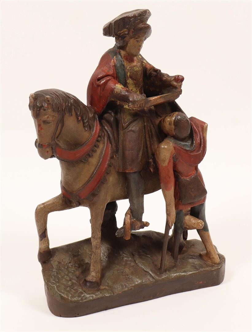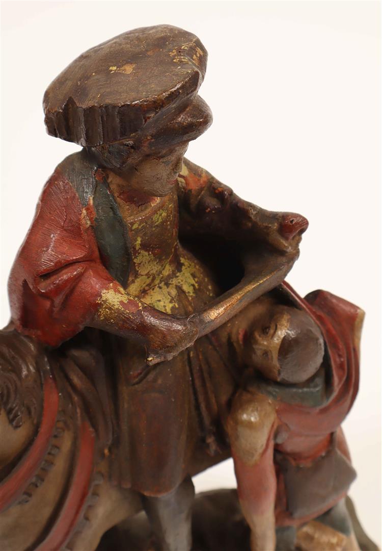 Polychrome sculpture after a medieval example, probably wood pulp, height 38 cm. In the tradition of Spanish devotional sculptures.