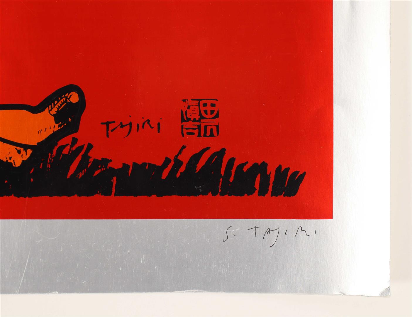 Hand-signed S.Tajiri in lower right, numbered 85/190 lower left, in black ink. Also signed in print. Moderate creases around the edges, else a clean fine copy.