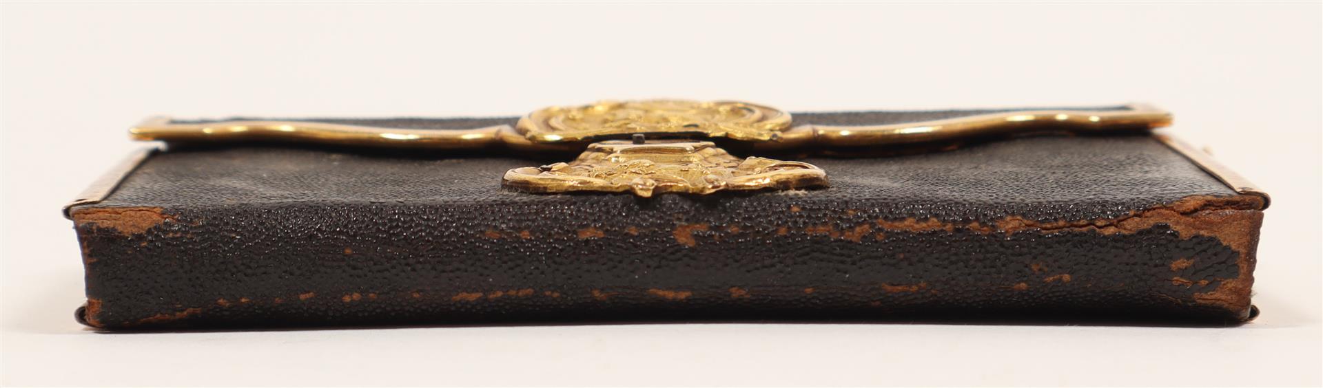 [Bindings] Dutch black sharkskin wallet binding w. gilt metal (brass?) clasp and catch, ca. 1760