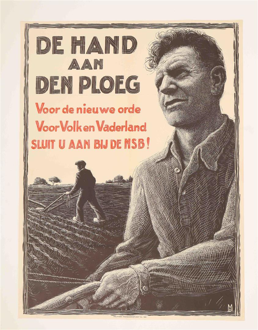 Voor de nieuwe orde Voor Volk en Vaderland, sluit u aan bij de NSB! 1943. Politieke propagandaplaat, no. 5001. 86 x 64.5 cm.