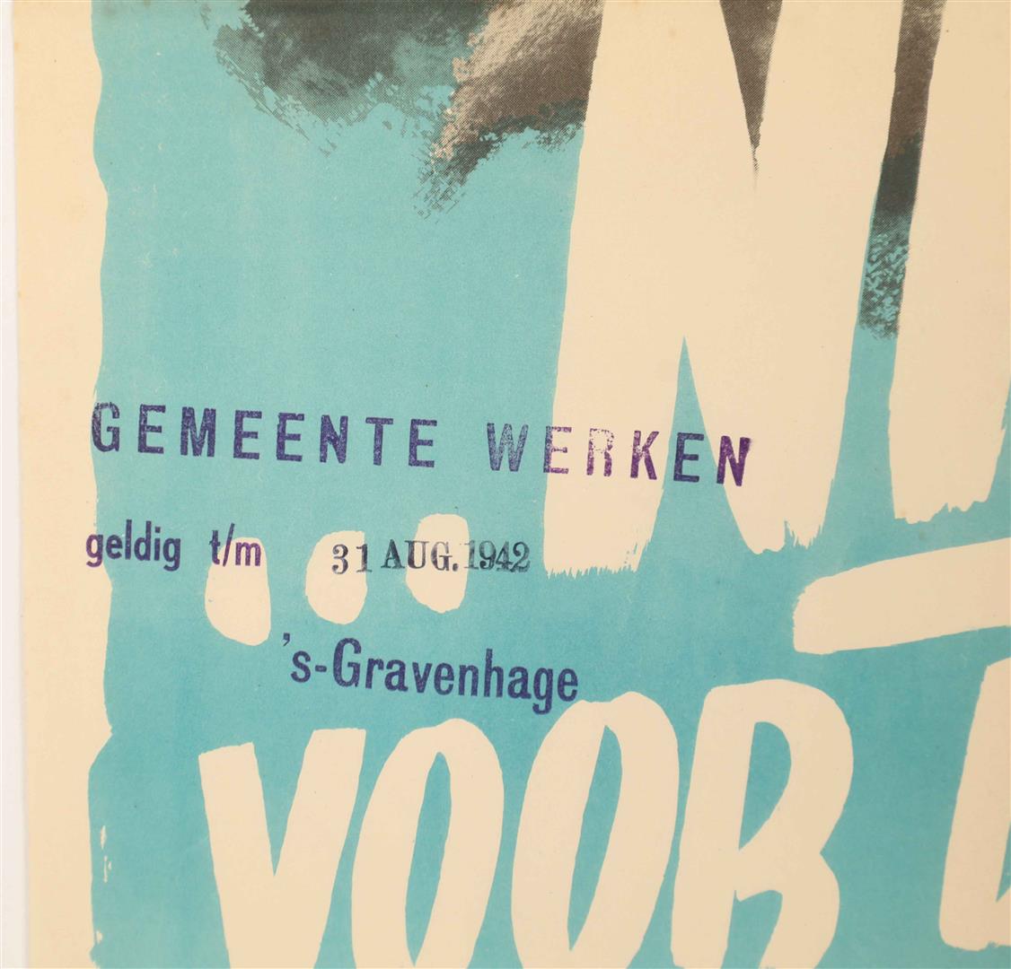 Stamped "GEMEENTE WERKEN geldig t/m 31 aug. 1942 's-Gravenhage". Folded, sl. yellowed at folds, one repaired tear. Overall a very good copy.