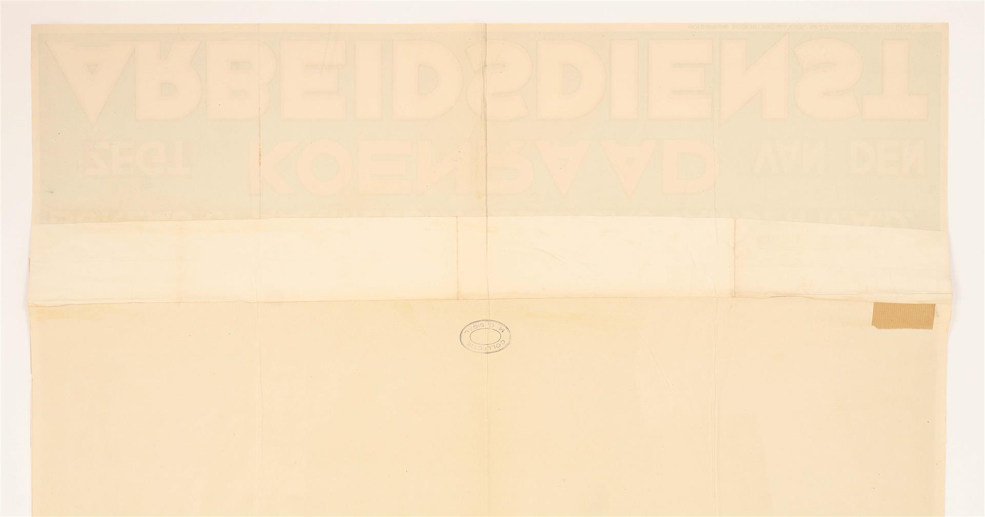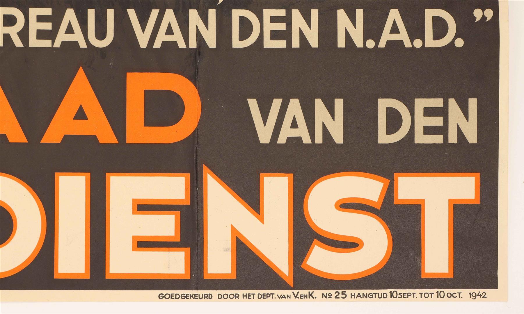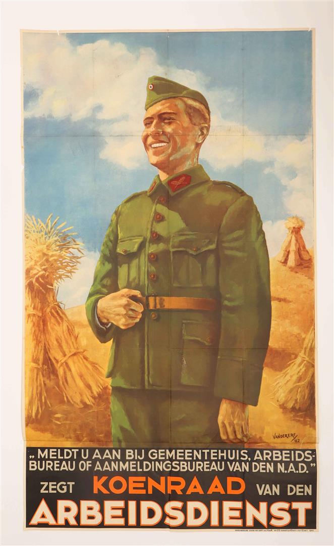 "Meldt u aan bij gemeentehuis, arbeidsbureau of aanmeldingsbureau van den N.A.D.'' 1942. No. 25. 129 x 76 cm.