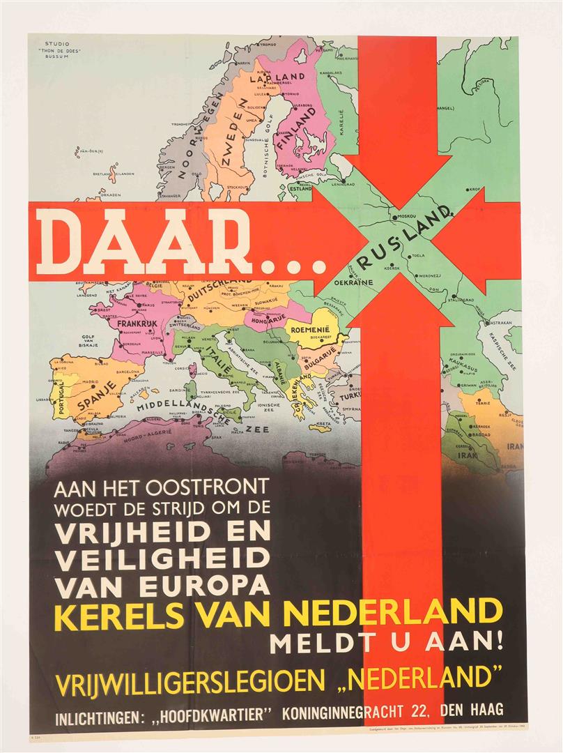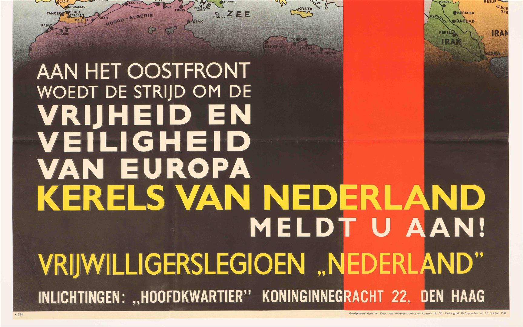 Vrijheid en veiligheid van Europa. Kerels van Nederland, meldt u aan! Vrijwilligerslegion "Nederland". 1942. No. 38. 110 x 80 cm.
