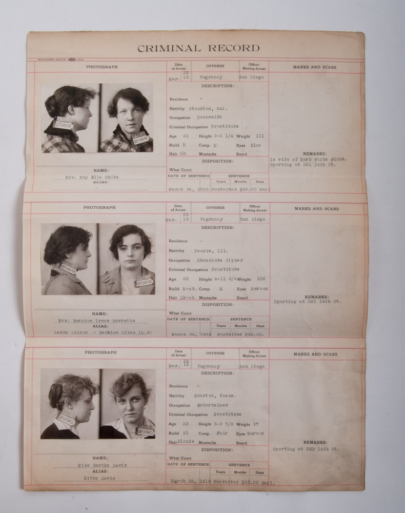 Fascinating lot with "mugshots", personal information and offences of criminals. The offences vary: theft, prostitution, fraud, murder, forgery, etc.