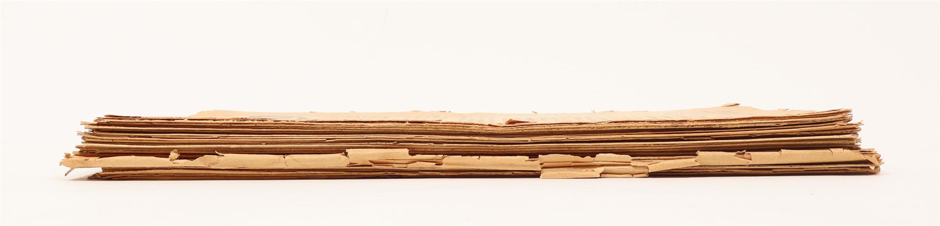 Ed. Anton Constandse. The Hague, Rott., Mai 1922 - 15 Aug. 1925, 12/ 12/ 5 numbers, 144; 148; 76 p., contributions by or after Nietzsche, O. Wilde, Ibsen, Jan W. Jacobs, G. de Groot, L. v.d. Linde, Jo de Haas, Multatuli, and many others, mosty initialled only. W. ills. on frontwr. after Albert Daenens, Käthe Kollwitz, Frans Masereel, Albin, W. Faber, Steinlen, Jan Wiegers a.o. Loose as issued. Year 2, no. 6 (Kunstnummer, Dec. 1923) misnumbered as "3e Jaargang". Occas. fraying and/ or waterst. in lower inner corner, some issues split on spine. Extremely rare and almost complete run under this specific title: PiCarta: "Jrg. 1, nr. 1 (May 1922)-Jrg. 3, nr. 11 (13 Okt. 1927). (...) Vanaf Jrg. 3, nr. 7 (Okt. 1926) verschenen als brochurereeks zonder ondertitel. Jrg. 3, nr. 6 is behalve de titel en de prijs identiek aan het eerste nr. van: Opstand." In 2012 a facsimile edition was published.